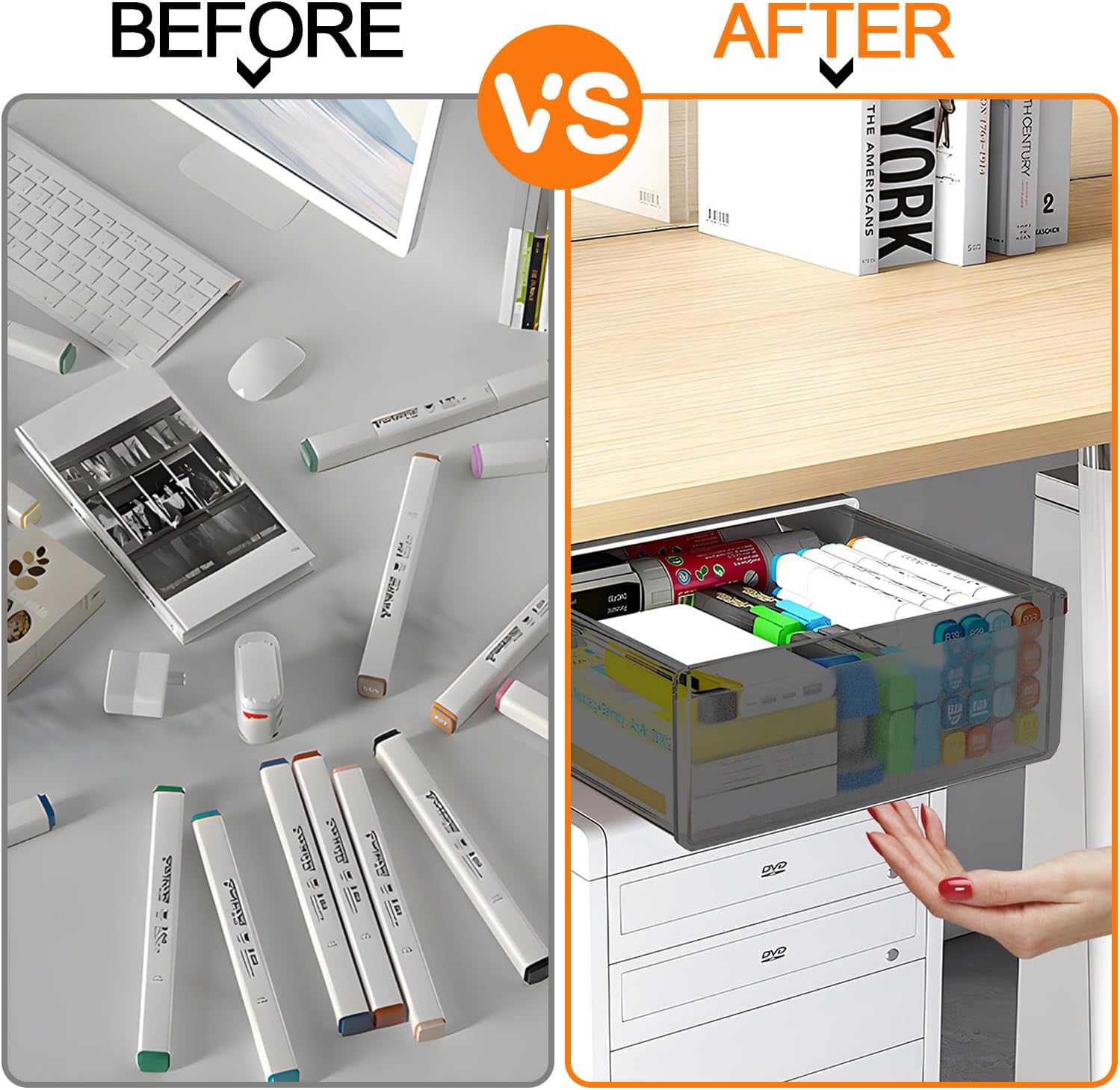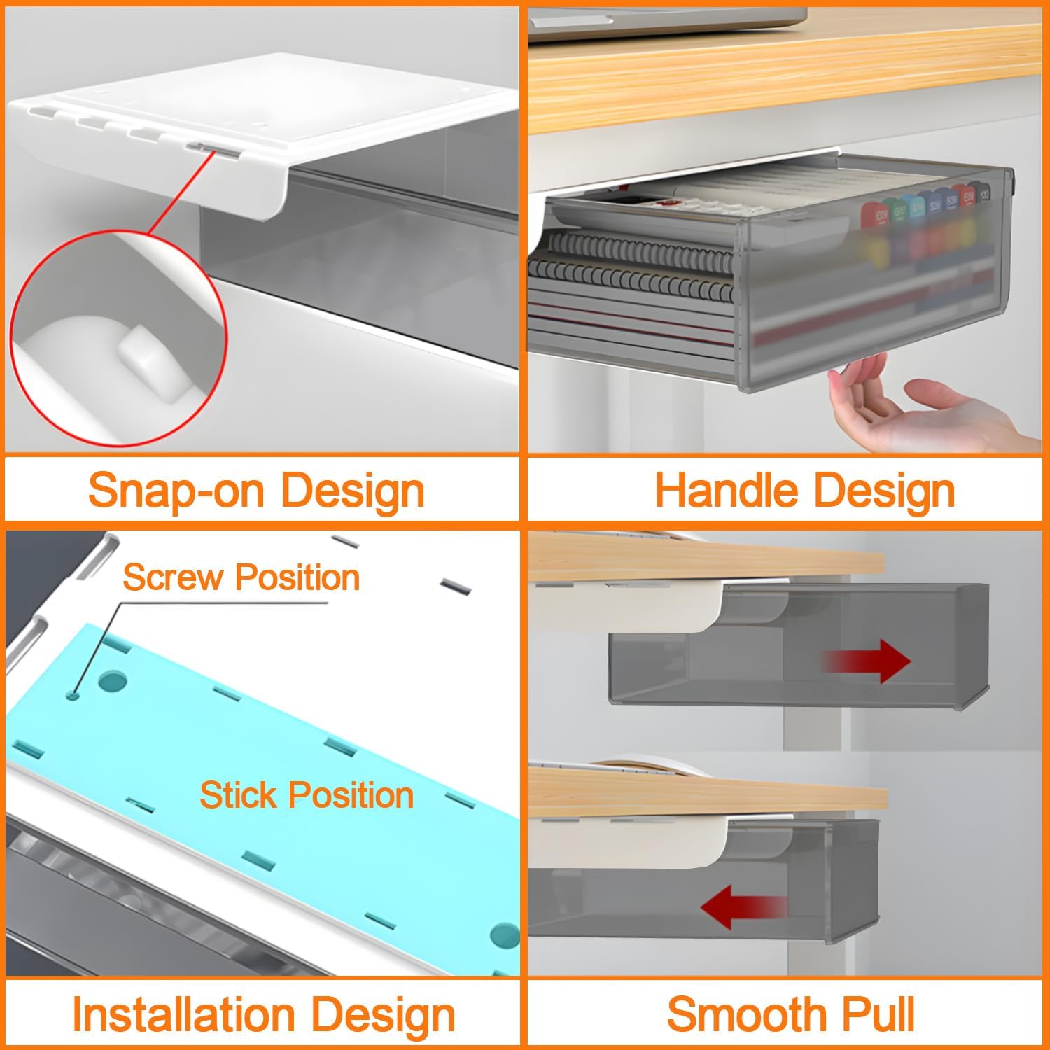 Reliable Quality Material : Under counter drawer for under desk is made of good quality plastic for more reliable and tough performance. Smooth surface and rounded corners, no sharp appearance, comfortable hand feel