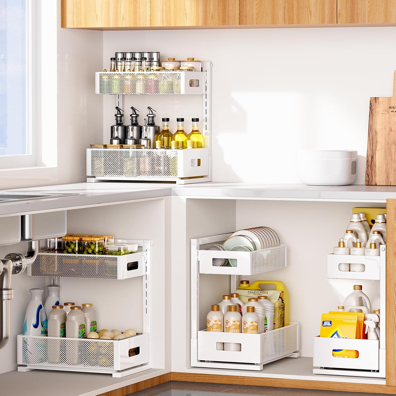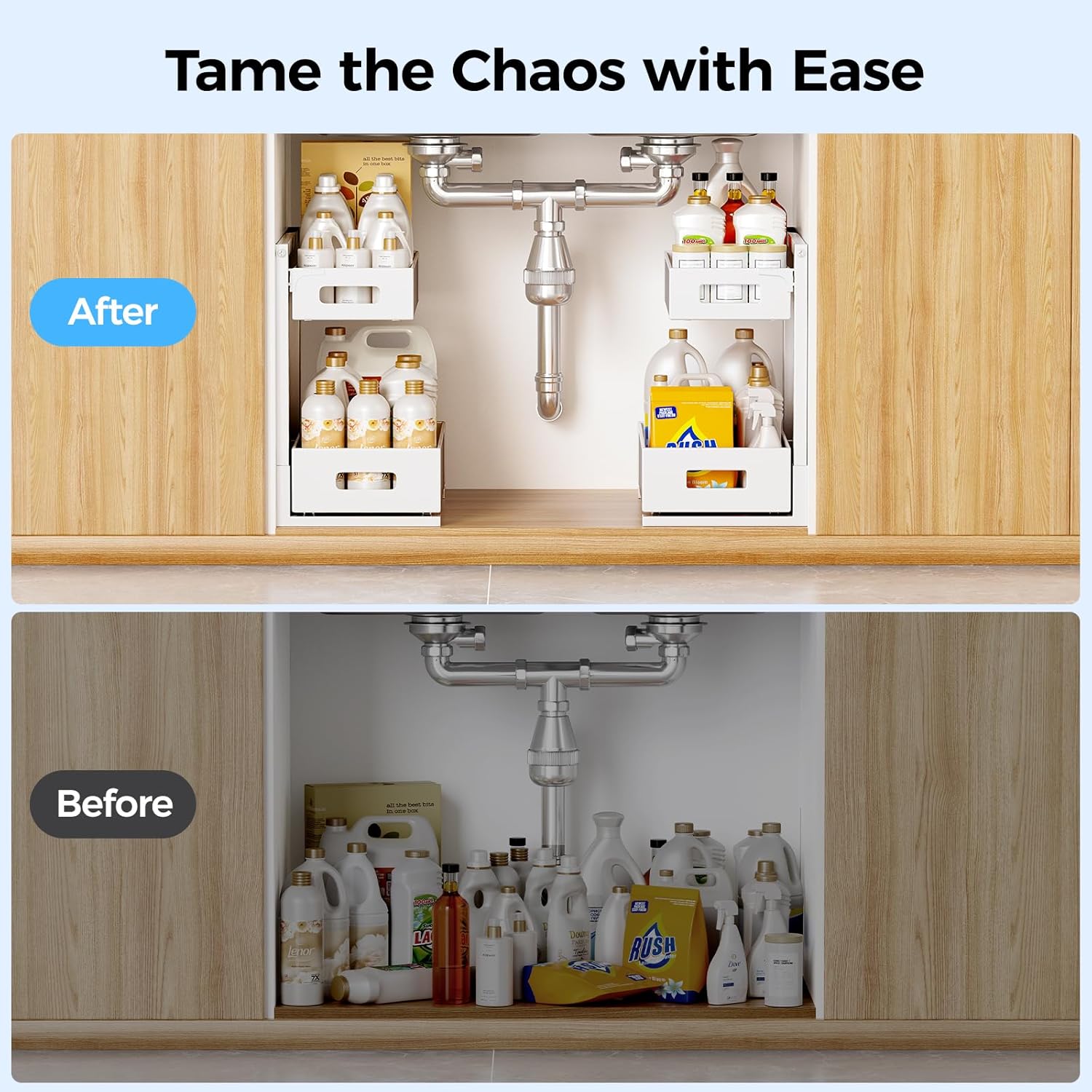 Ultra-Smooth & Silent Sliding: This under-sink organizer comes with an easy-to-mount, full-extension ball-bearing sliding base. The bottom drawer glides in and out seamlessly and silently, even when fully packed. It’s as smooth as cutting through warm butter, giving you hassle-free access to your stored essentials. If you’re on the hunt for the perfect storage solution, this organizer is an absolute must.