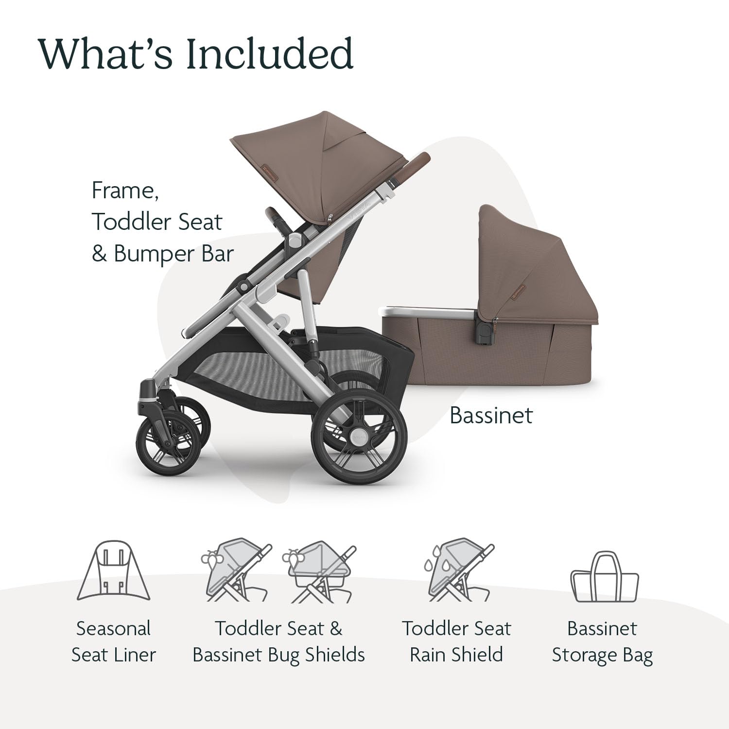BUNDLE INCLUDES: Vista V3 Stroller, Bassinet V3, Bug Shields for Toddler Seat and Bassinet V3, Toddler Seat Rain Shield