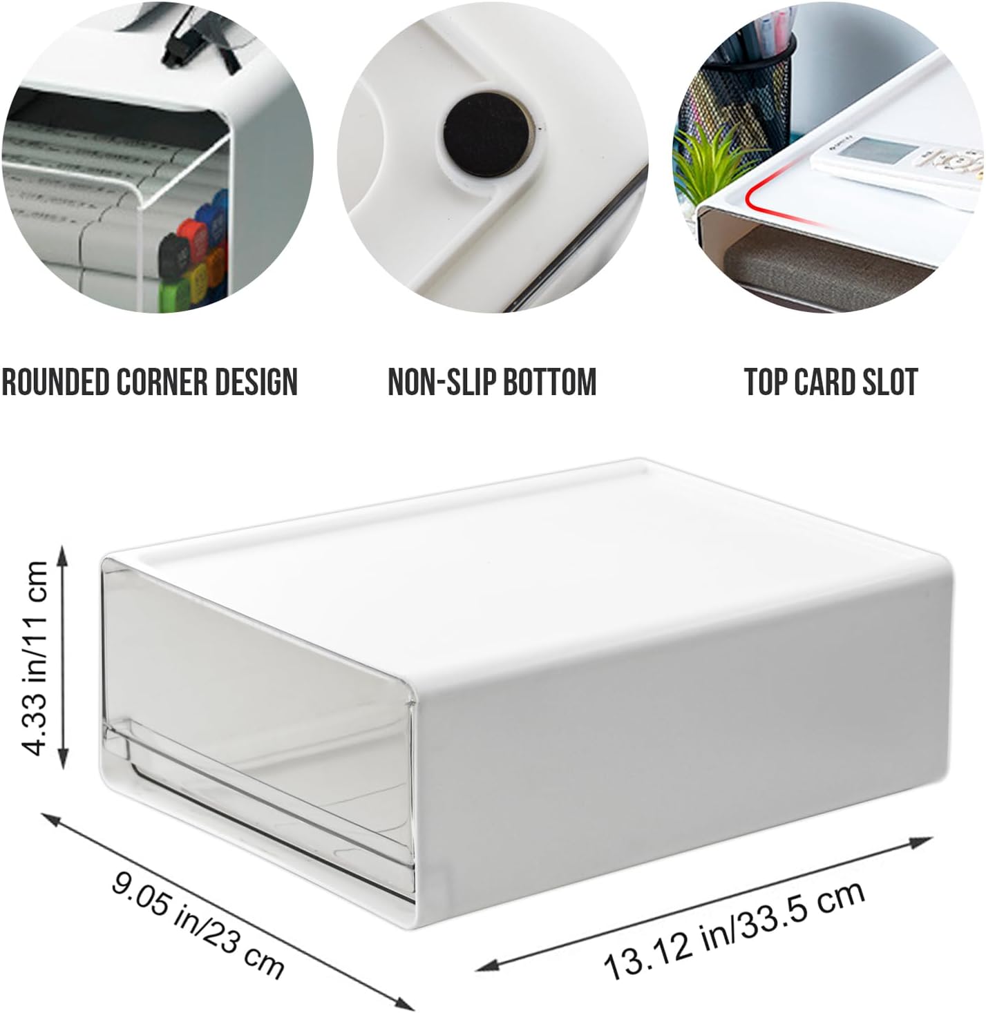 [Sturdy and Durable Material] Plastic desk organizer with drawer is made from high strength ABS material which is tear proof, water resistant and easy to clean. Drawer system for office, desk, home, school, business use. Desktop drawer system dimensions: 9.05”L x 13.12”D x 4.33”H.