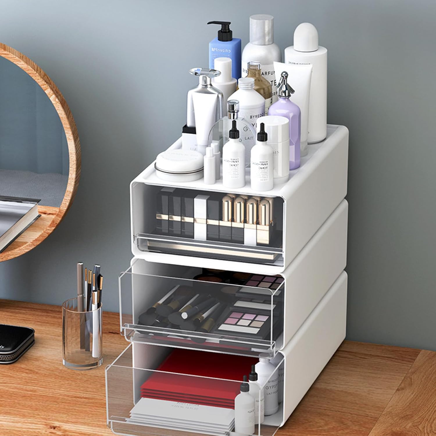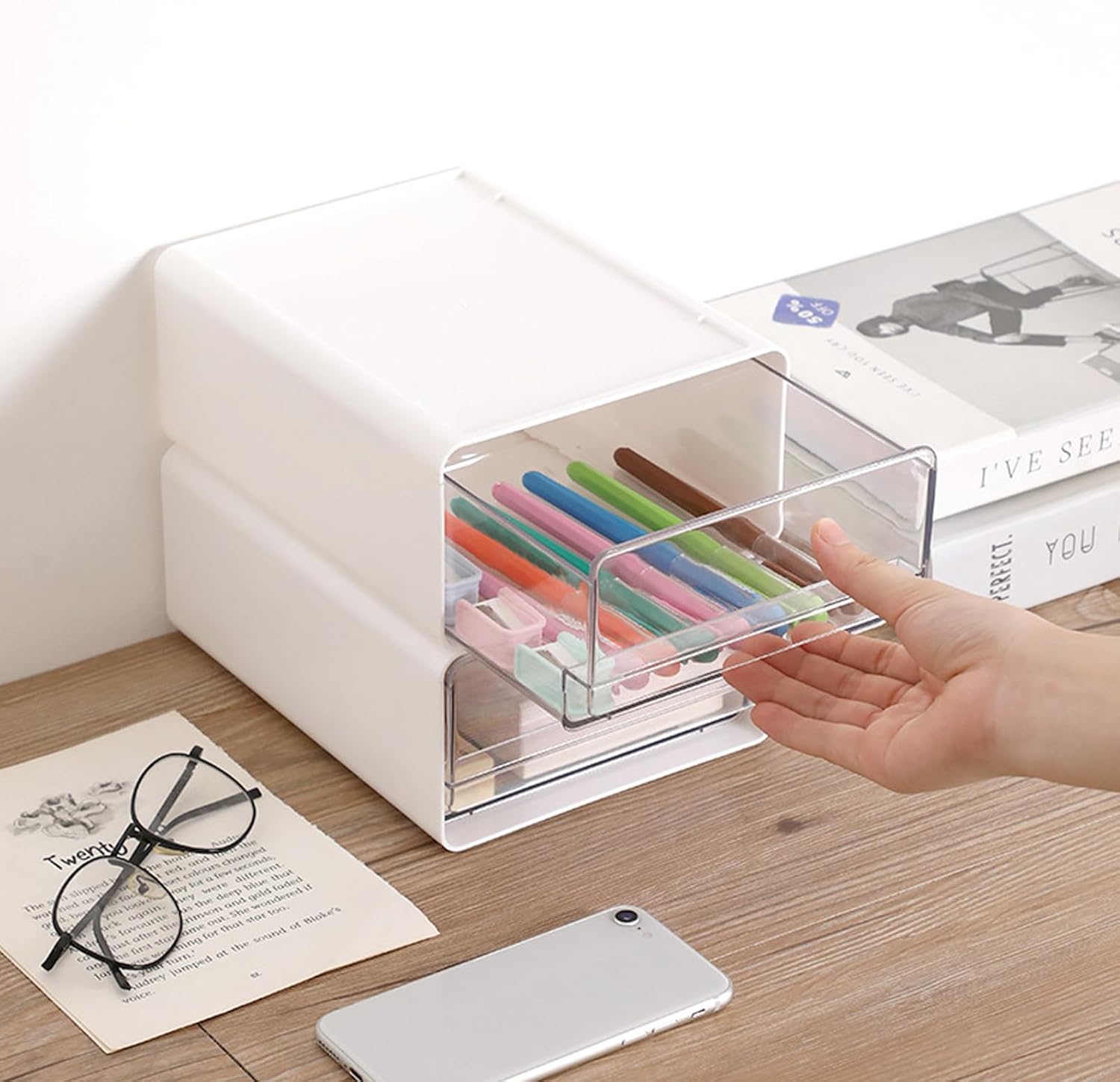 [Large Capacity] Stackable storage drawer organizer unit is large enough for daily filing and storing. Compact drawer organizer for desktop keeps your workplace organized and tidy. Paper organizers for desks can hold a variety of items while taking up little space on your desktop or file cabinet.