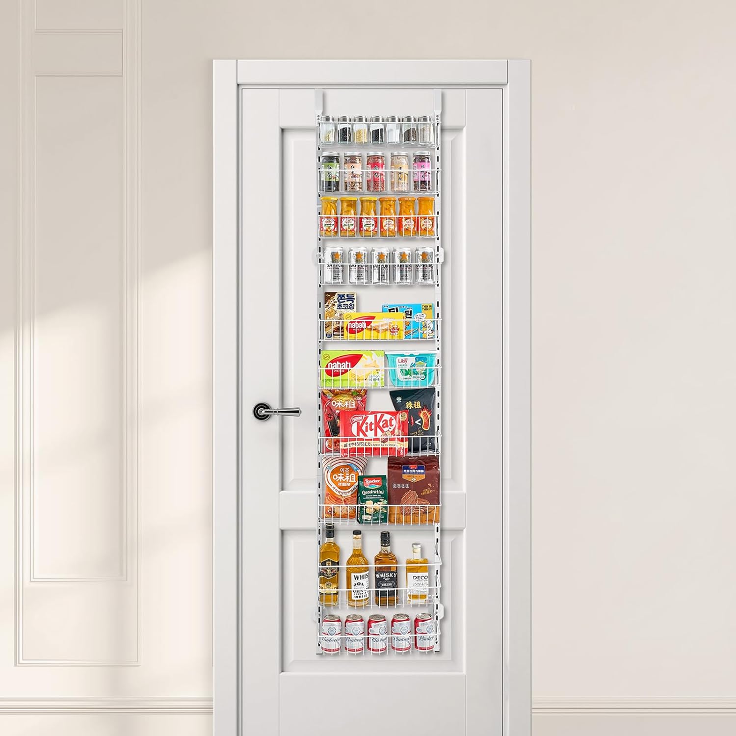 This over the door pantry organizer features 10 large baskets, maximizing your storage capacity! You can use it as a pantry door organizer, spice rack, or closet storage organizer—perfect for small spaces.