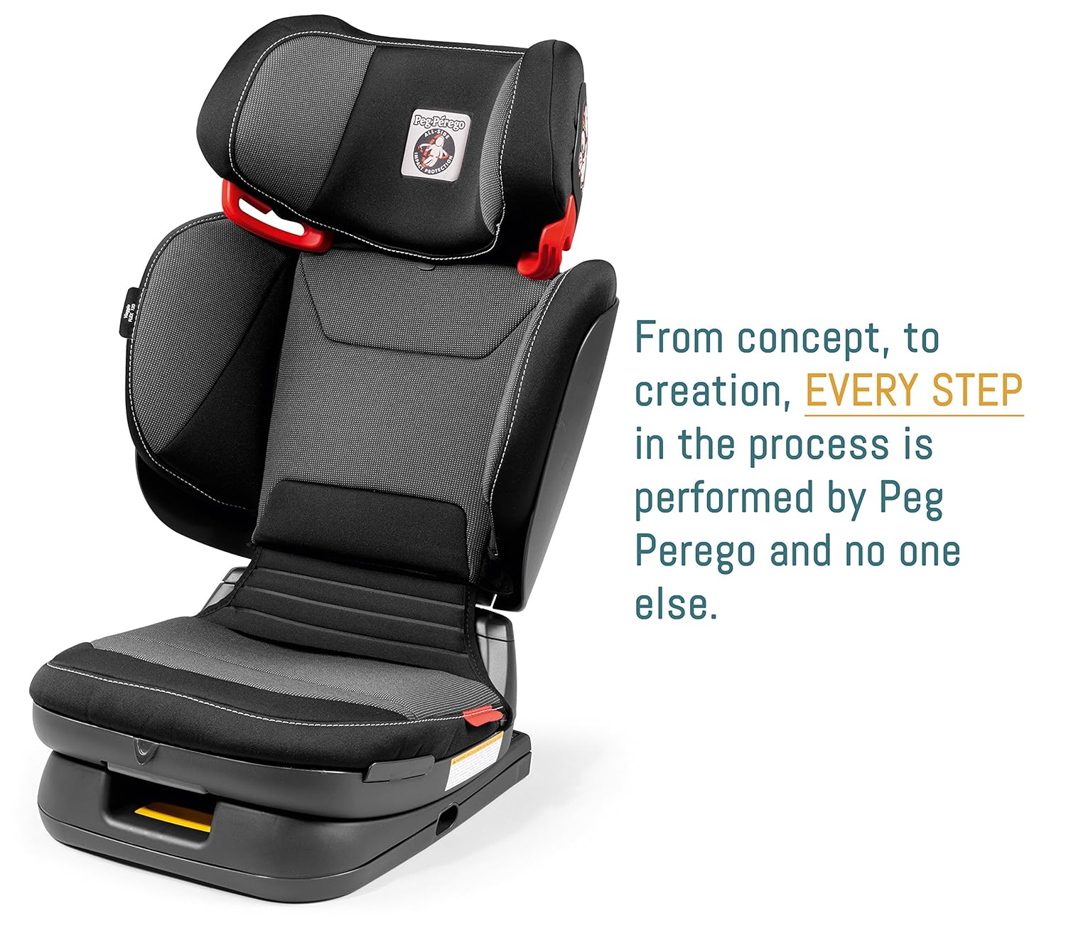 Made In Italy. The Viaggio Flex 120 has the unique capability to fully accommodate a child’s growth with its 4D Total Adjust Technology. This means the booster can be adjusted in four different locations: 1) the headrest can adjust to five different positions vertically, 2) the upper backrest adjusts three positions vertically, 3) the side wings can expand out three positions, 4) the seat can recline five positions. These adjustments can be made independently from each other, allowing for a truly original experience in comfort. Securing the Viaggio Flex 120 to the car is made easier with the integrated rigid LATCH, equipped with a blind lock attaching system which prevents the seat from being accidentally released by another passenger. The rigid LATCH can tuck back into the base, allowing for an easy installation with just the seat belt. An aluminum-reinforced backrest ensures safety and protection against whiplash in the case of a front-end accident and additional protection in the event of a rear-end collision. EPS throughout the side wings and headrest also serves to absorb energy during a crash. The backrest of the Viaggio Flex 120 can fold down onto itself when not in use, even while attached via rigid LATCH. Transporting and storing the seat is also made easier because of the folding capability, making the booster one of the most practical around.