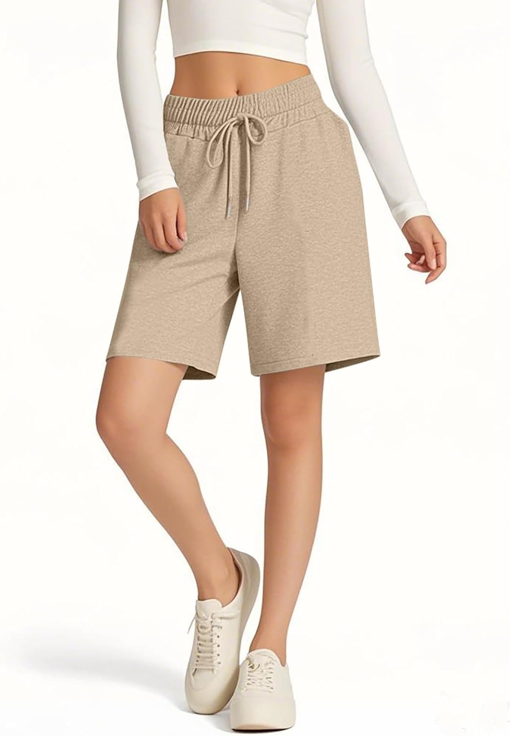 Viatabuna Womens Long Sweat Shorts Drawstring Comfy Loose Athletic Lounge Sports Bermuda Knee Length Shorts with Pockets