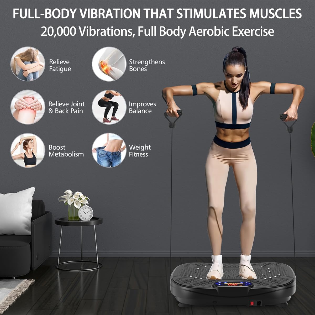 Versatile Workout: Engage multiple muscle groups simultaneously and improve strength, flexibility, circulation, and balance with vibration exercises.