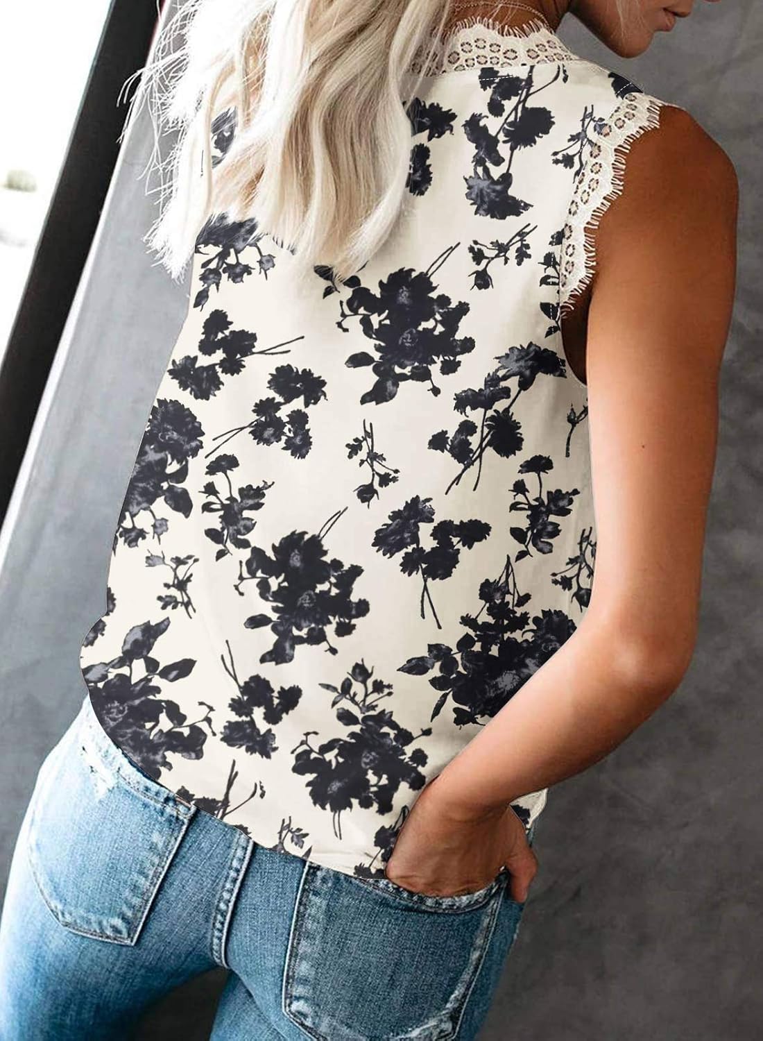 Customers find the tank top flattering, with one noting how it drapes beautifully, and appreciate its lightweight material and comfort, describing it as silky. Moreover, they like its versatility, saying it can be worn with almost anything, and one customer mentions it works well with jeans and sandals. However, the sizing runs big, and the material quality receives mixed feedback – while some praise the material and pattern, others find it cheaply made. The lace detail also gets mixed reviews, with some loving the lace details while others report the lace fraying.