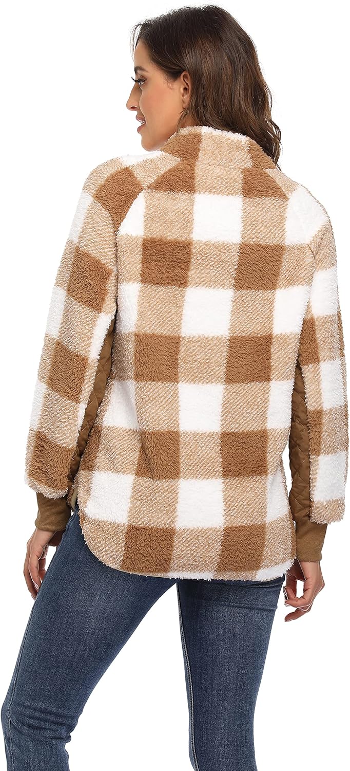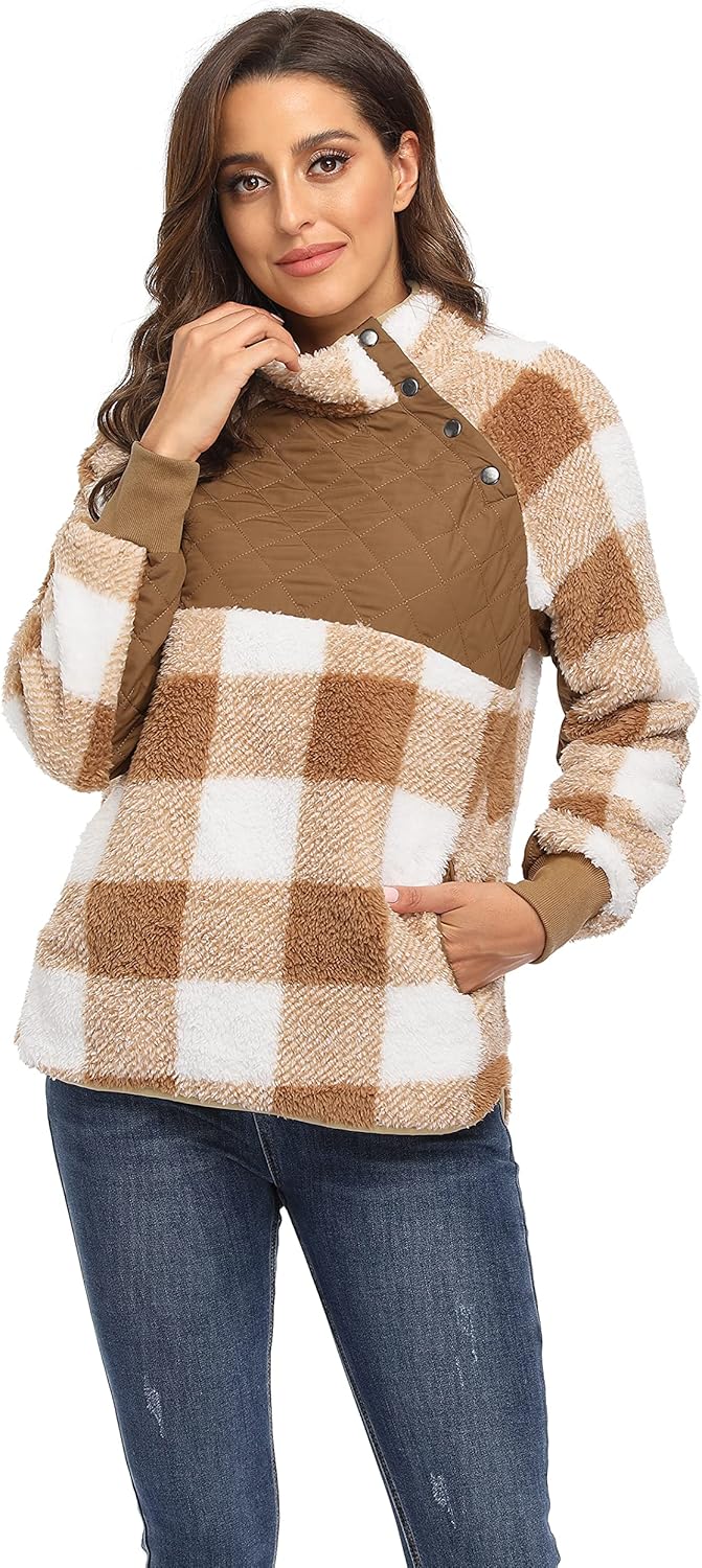 Fashion Designs – Women’s Fleece Sweatshirt, Solid Color Sherpa Fabric, Color-Block, Plaid Printed, Stand Collar, Zip Up, Long Sleeve, Kangaroo Pocket, Loose Fit, Size XS-2XL