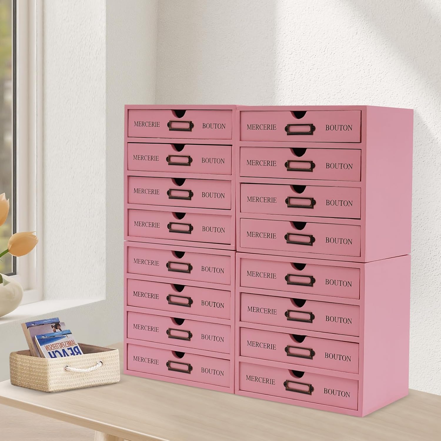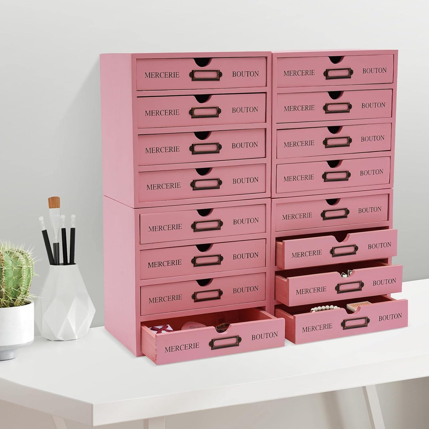 Large Capacity Storage: We provide a total of 4 storage boxes, each containing 4 drawers, for a total of 16 9*2in independent storage space. These boxes are suitable for categorizing and storing various documents, small objects, etc., and help to keep the desktop neat and orderly.