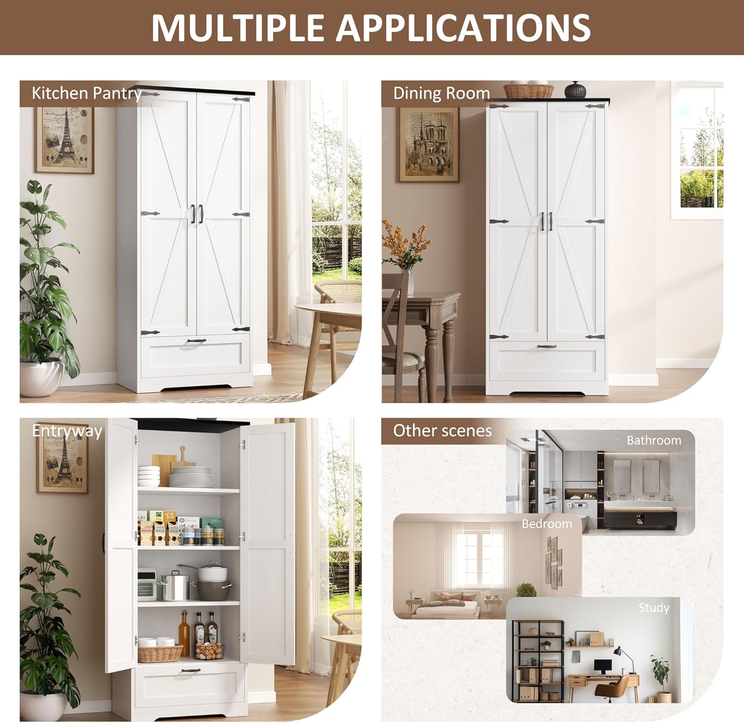 Ample Storage: Maximize your kitchen space with a spacious pantry cabinet designed for storing dry goods, canned items, and cooking essentials.