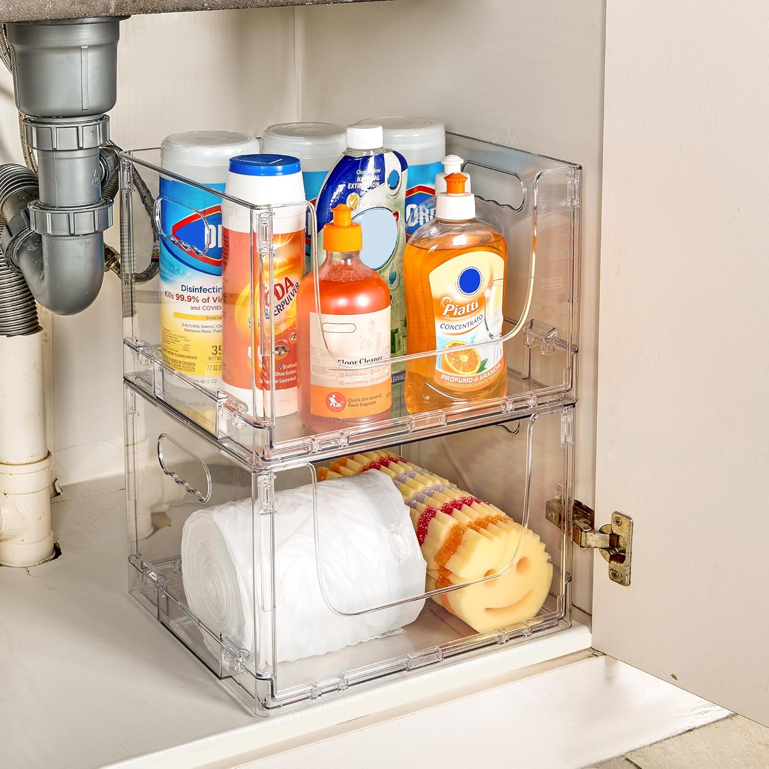 【Space-Saving Design】 These bins are stackable, making them ideal for keeping kitchen countertops neat and clutter-free. Their clear design allows for easy identification of contents and quick checks on the freshness of stored items.