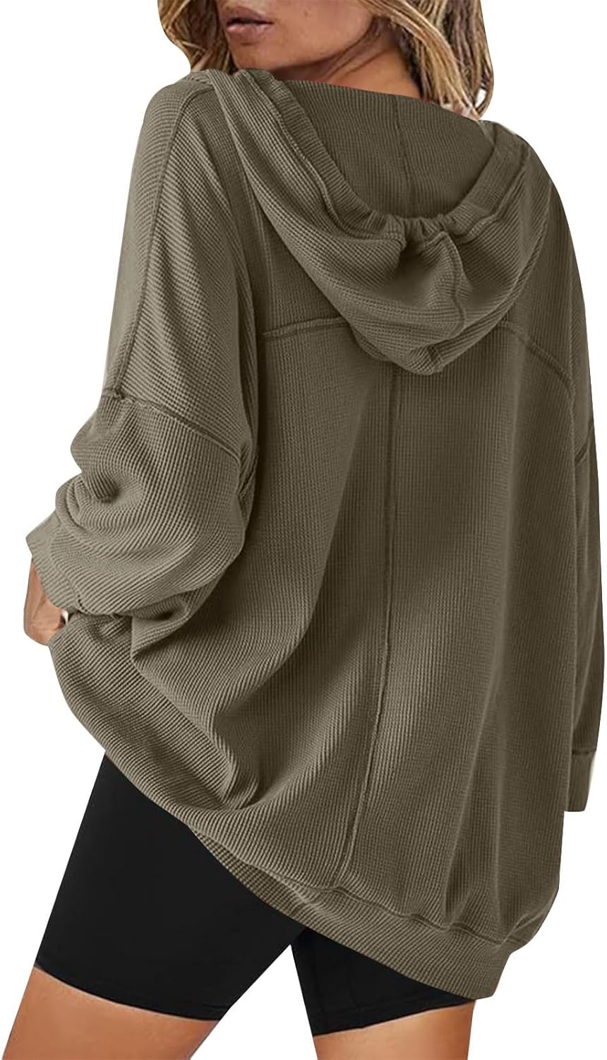 Be the first to review “Waffle Knit Top V Neck Tunic Hoodies for Women Oversized Vintage Long Slleve Hooded Sweatshirt with Pockets”