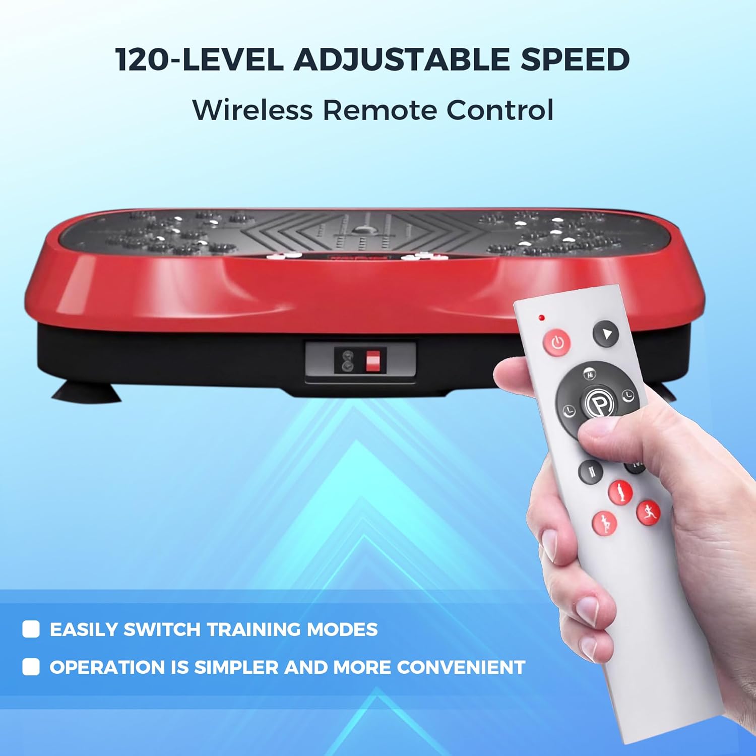 𝗩𝗲𝗿𝘀𝗮𝘁𝗶𝗹𝗲 𝗦𝗽𝗲𝗲𝗱 𝗦𝗲𝘀𝘀𝗶𝗼𝗻 𝘄𝗶𝘁𝗵 𝗣𝗿𝗼𝗴𝗿𝗮𝗺𝗺𝗮𝗯𝗹𝗲 𝗠𝗼𝗱𝗲𝘀: WANKO vibration plate for lymphatic drainage with a PP surface, a power button for on/off, and programs like Time Program (adjustable gears and time) and Sports Program (P1: 20-80 speeds, P2: 40-100 speeds, P3: 60-120 speeds), each cycle lasting 10 minutes.