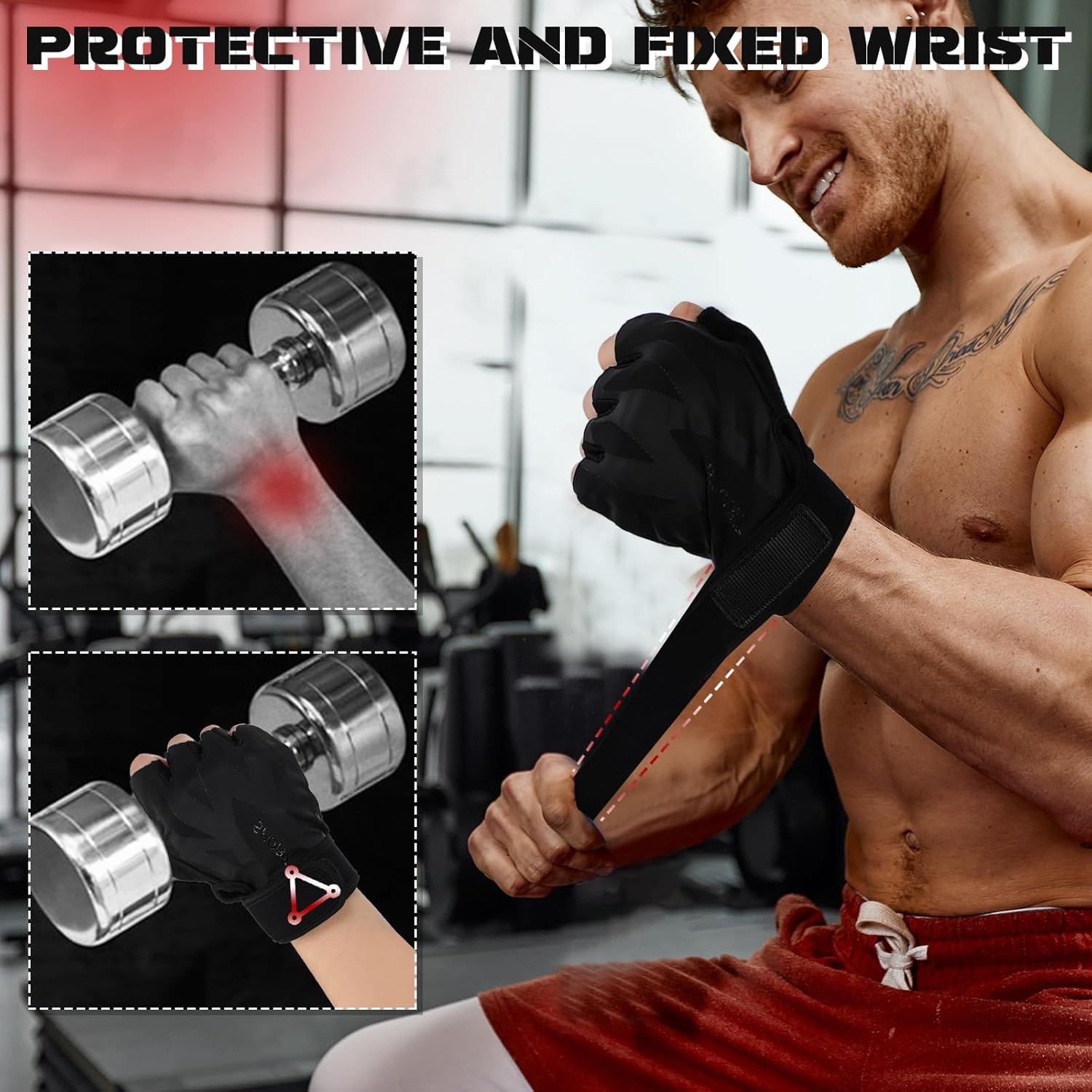 【Breathable and comfortable】These weight lifting gloves are made of highly elastic breathable fabric to reduce friction and pressure, guard gloves keep your hands dry and comfortable. The skin-friendly, moisture-wicking, and non-slip inner layer ensures a comfortable fit, grip gloves allow you to focus on your workout