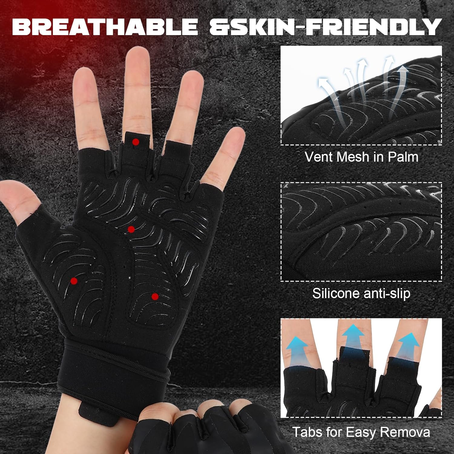 【Grip and Durability】These gym fingerless gloves are made of high-quality microfiber for excellent abrasion resistance. The weight-lifting gloves for men full-palm non-slip silicone design that ensures a secure grip