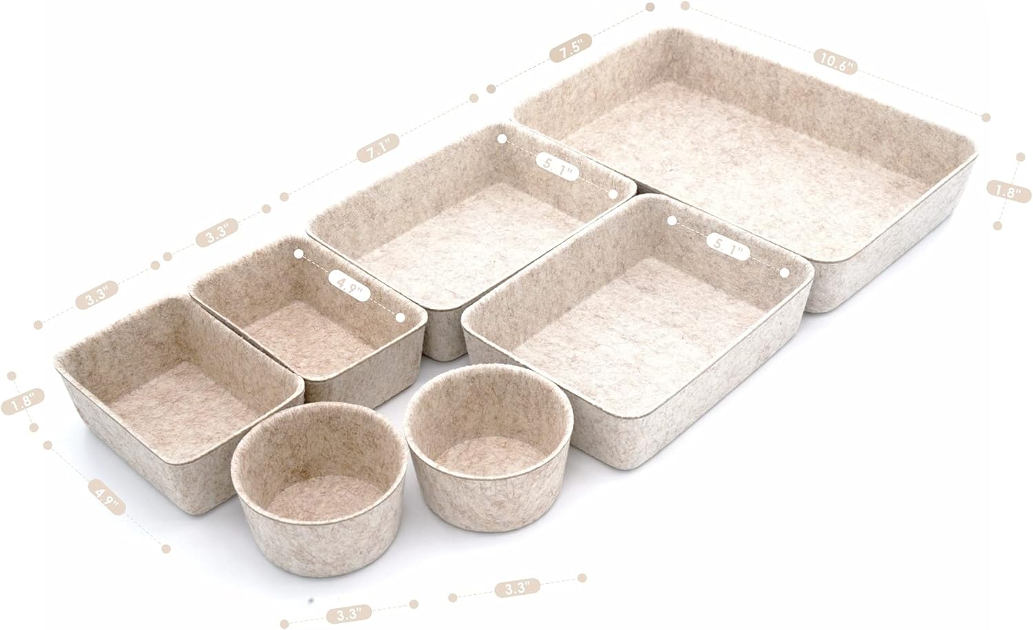 【Sustainable material】: recycled felt with comfortable touch feeling,, no noisy like plastic , keeps stuff from flying around in the drawer. soft to prevent scratching, flexible for space saved up on desk, kitchen,bathroom or anywhere you desire with these stylish storage and organizer bins.