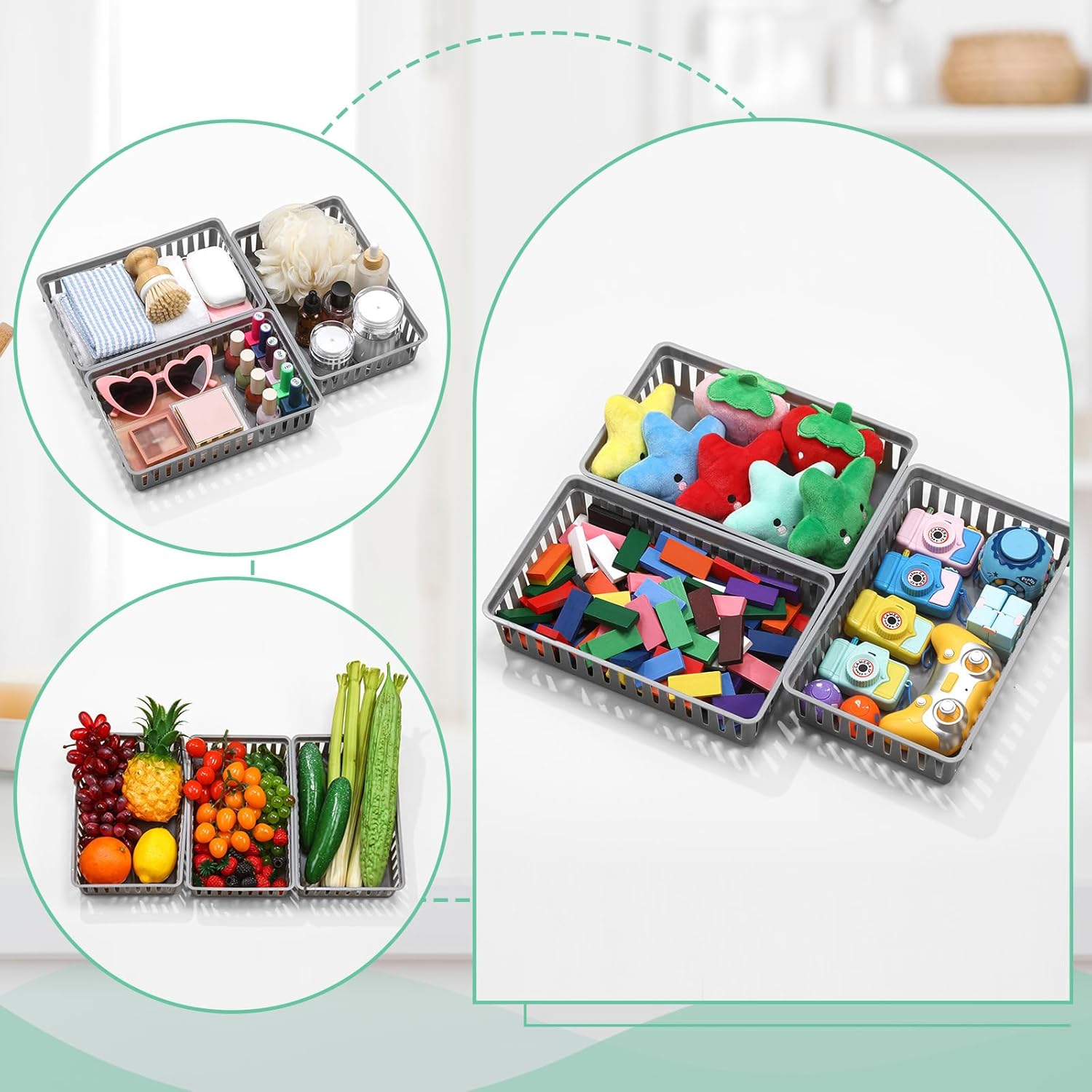 Plastic Baskets for Organizing: this set includes 24 plastic storage baskets measuring about 10.24 x 6.5 x 2.36 inches/ 26 x 16.5 x 6 cm, catering to your diverse storage needs; Each bin is spacious enough to accommodate various items, allowing you to maintain an organized and tidy environment in your space