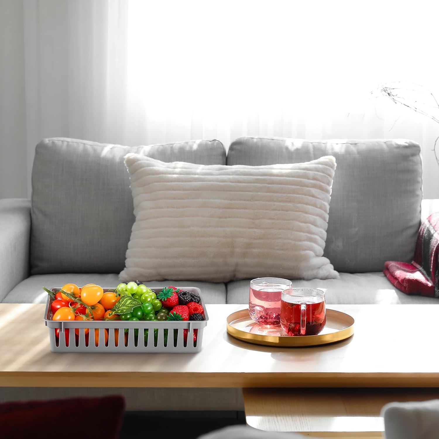 The gray color of the plastic baskets ensures they blend seamlessly into any room setting. The elegant gray design can add a touch of modern styling to any space, without causing any color clash. These bins fulfill both functionality and aesthetic appeal.