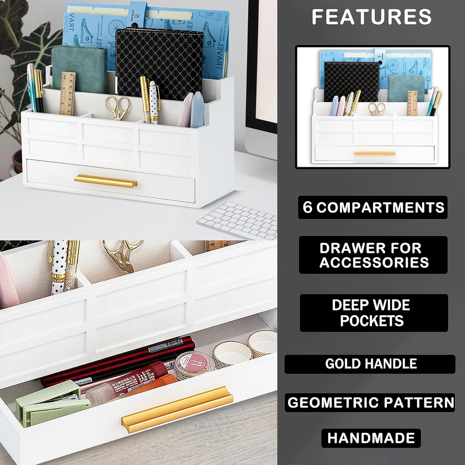EXQUISITE APPEARANCE: This white desk organizer has a modern and elegant appearance design, which can help you and your family eliminate the troubles of daily clutter. It can help you create a designated workspace that is both functional and aesthetically pleasing