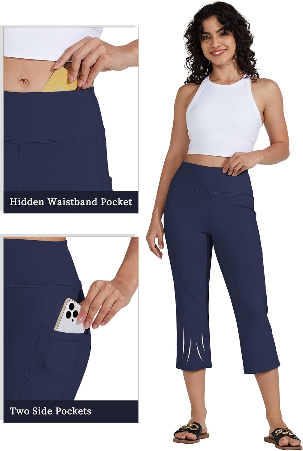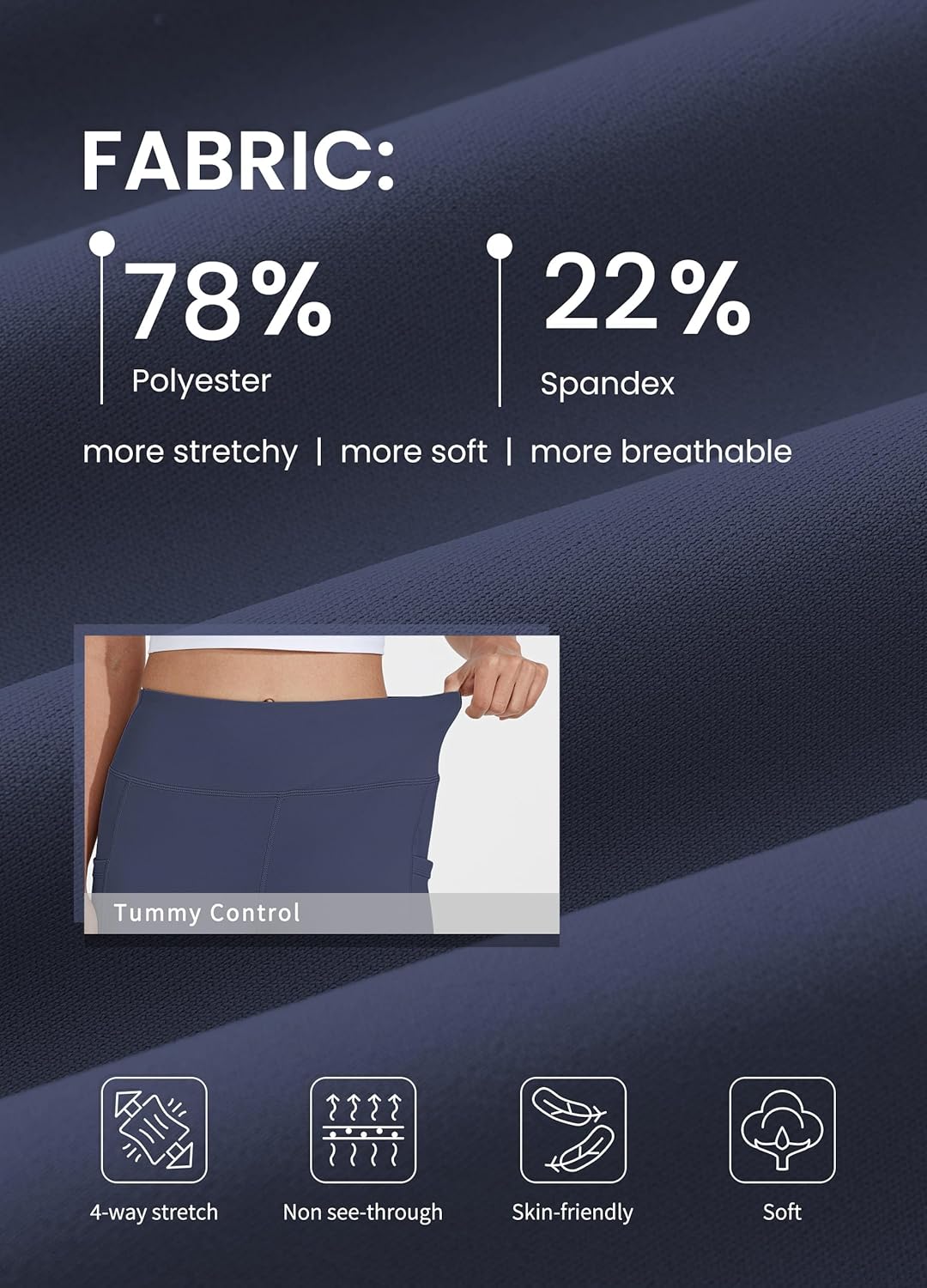 Customers find these yoga capris comfortable with a high waist and perfect length, featuring a silky smooth fabric and shiny polyester material. The pants are stretchy and wrinkle-free, with a secret waist pocket that can hold a cell phone, and they wash well without shrinkage or deformity. Customers appreciate their appearance, with one noting they’re versatile enough for both casual and dressy occasions.