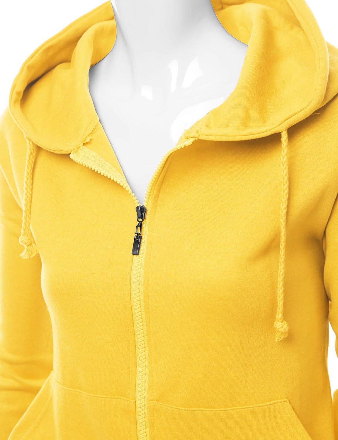 Women’s Basic Hoodie zip up sweater with Side Kangaroo front pockets YELLOW XXXL