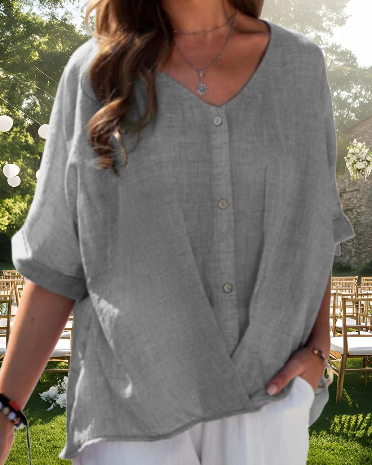 Linen Shirts for Women V Neck Button Down Blouse Short Sleeve Office Work Tops Vintage Vacation Tees Shirt Blouse Tops Cotton Linen Tunic Tops for Women Summer Casual Button Down Long Sleeve V Neck Blouse Loose Solid Flowy Beach Shirts