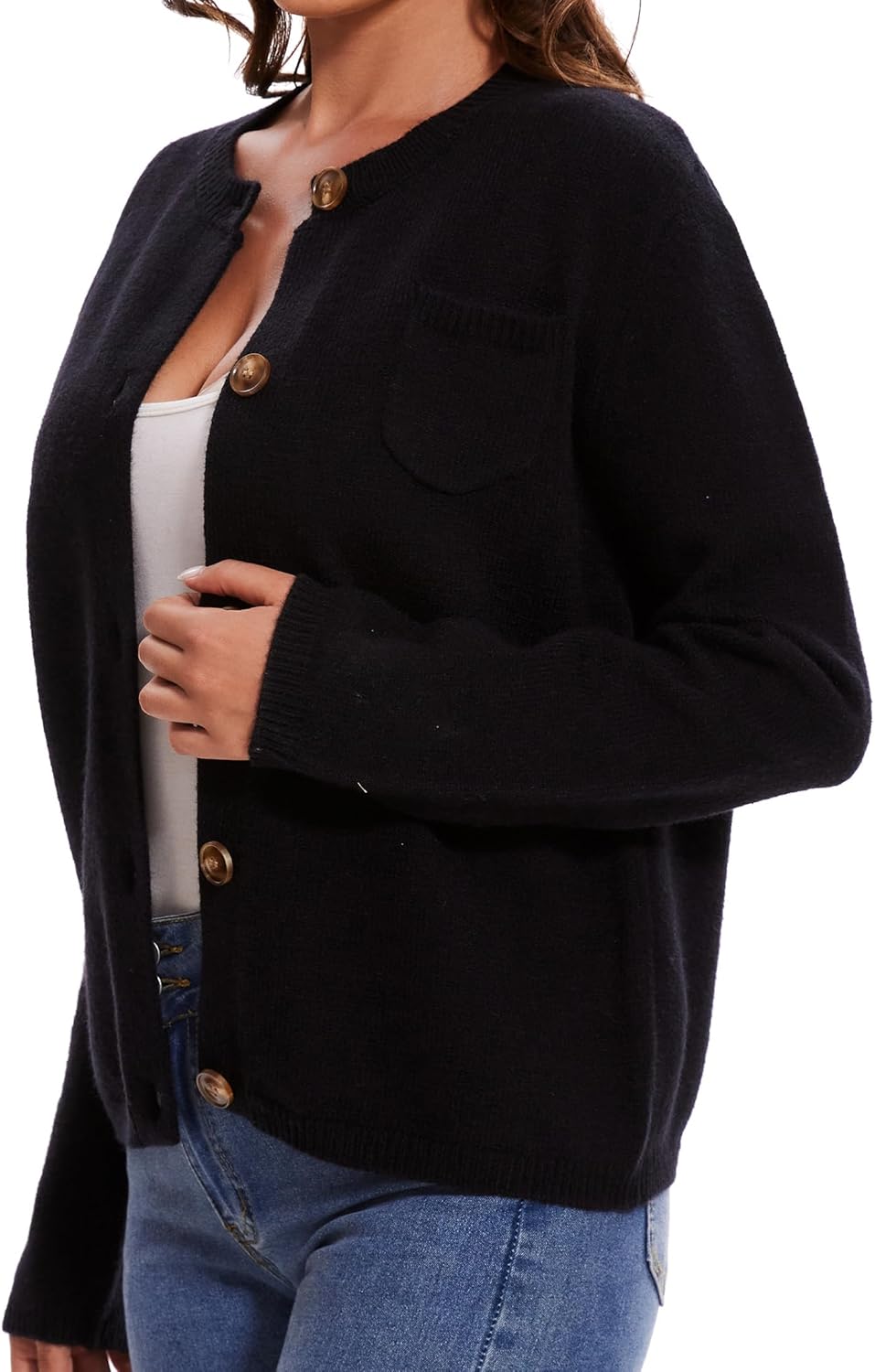Women’s Cardigan Sweaters Casual Long Sleeve Solid Color Button Down Crewneck Knit Cardigans with Pocket