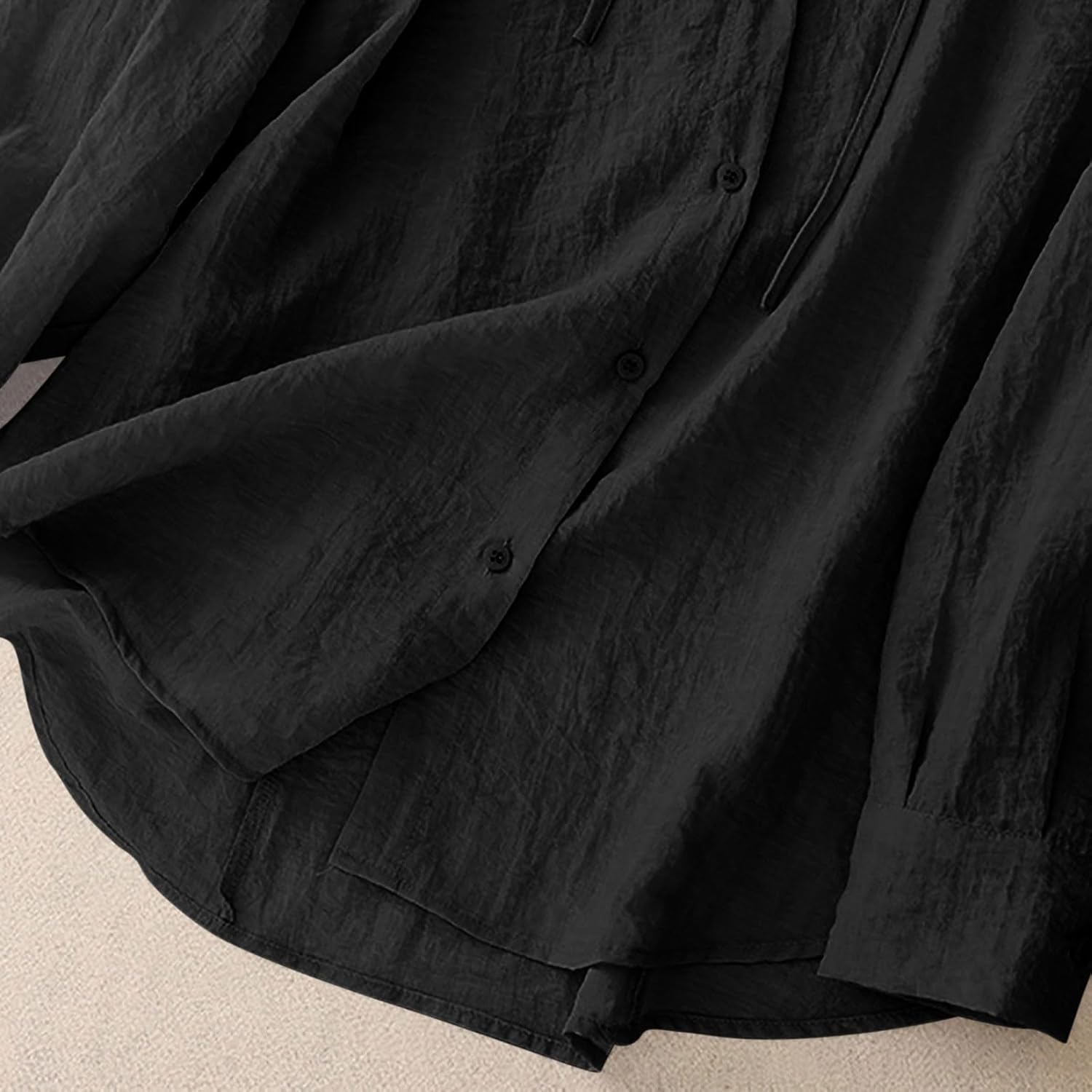 Women’s Cotton Linen Sun Protection Shirts Hoodie Long Sleeve Button Down Cardigan Lightweight Summer Cover Up Tops
