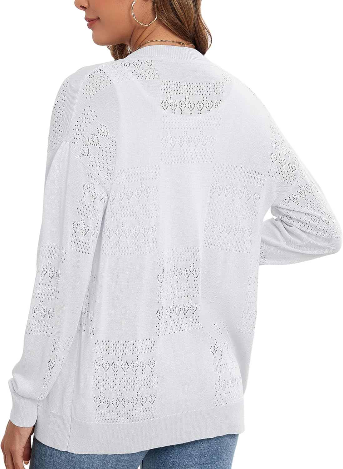 Hollow Out Knit Shrugs Button Down Lightweight Open-front Cardigan