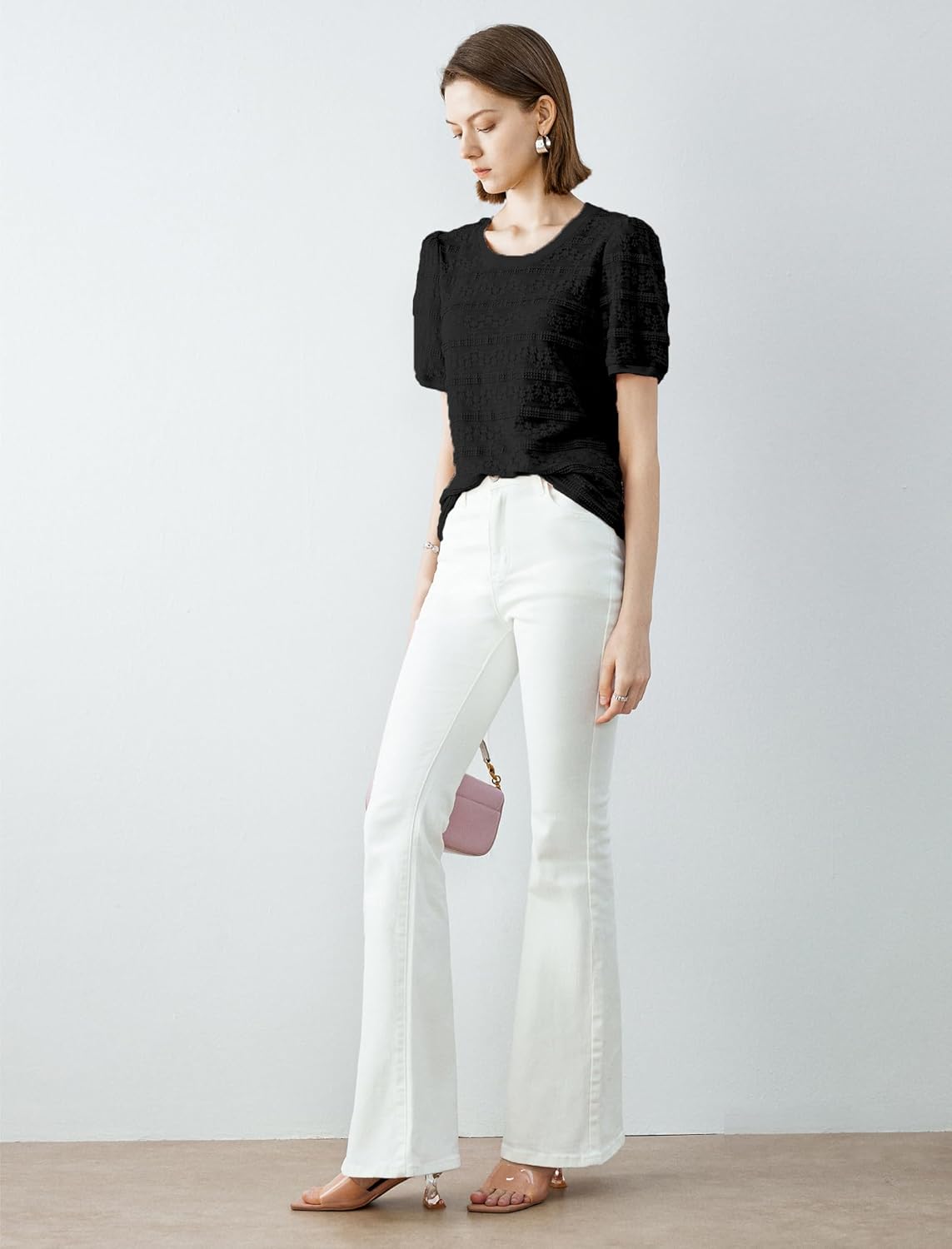 Be the first to review “Women’s Lace Puff Short Sleeve Tops, 2025 Summer Hollow Out Crochet Lace Blouses, Round Neck Tee Cute T Shirt”