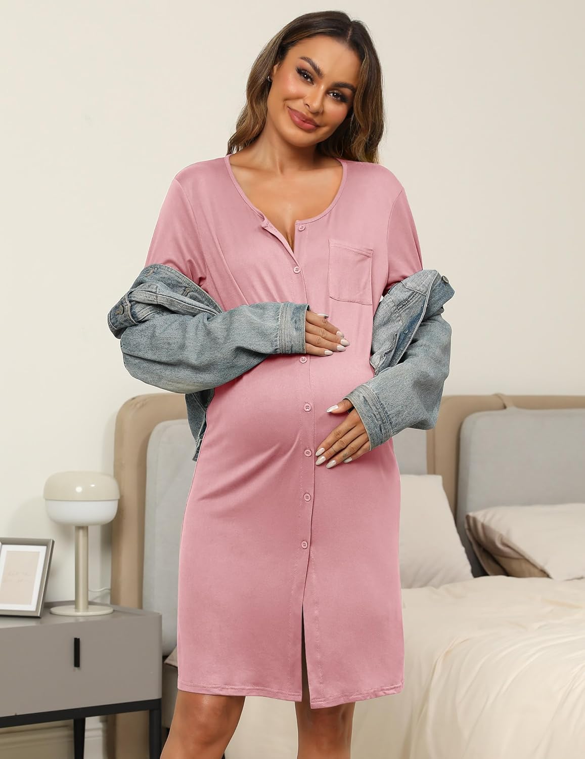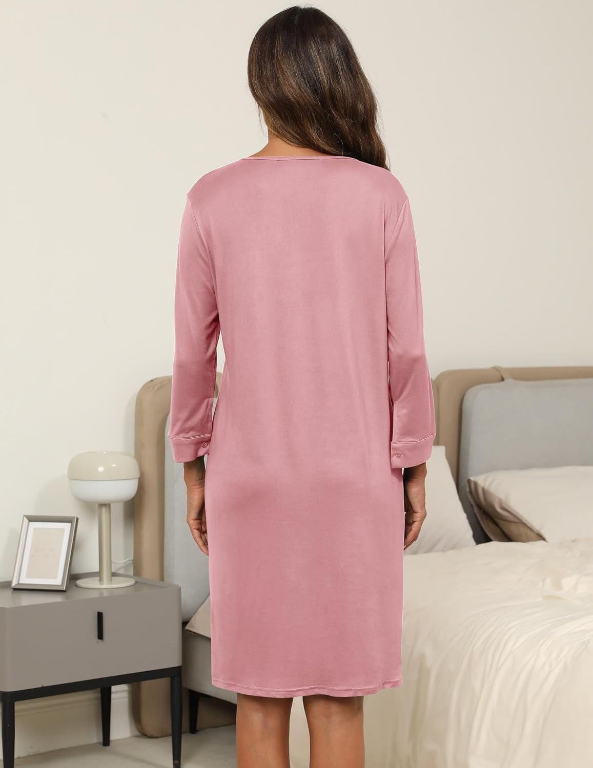 Women’s Nightgown V Neck Button Down Nightshirt 3/4 Sleeves Sleepwear Soft Pajama Dress S-XXL