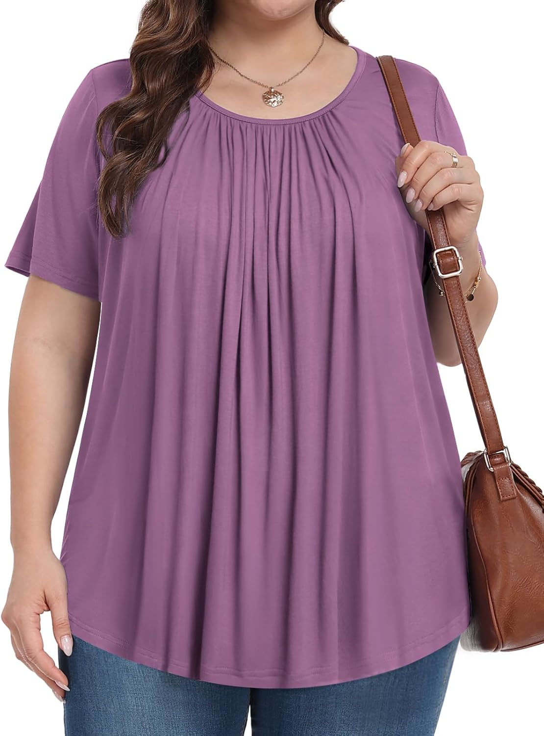 Plus Size Tops for Women Tunic Short Sleeve Summer Shirts Loose Fit Blouses Womens Plus Size TopsWomens Plus Size Tops