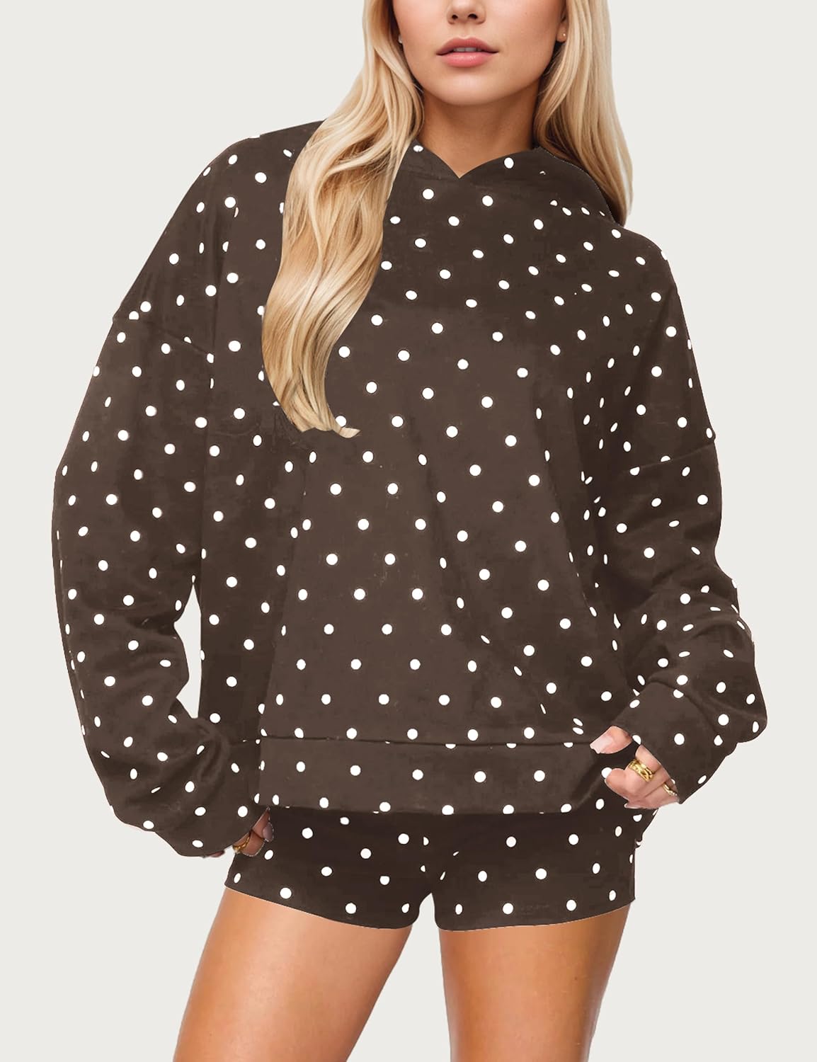 Oversized Polka Dots Hoodie Fleece Aesthetic Hooded Sweatshirt