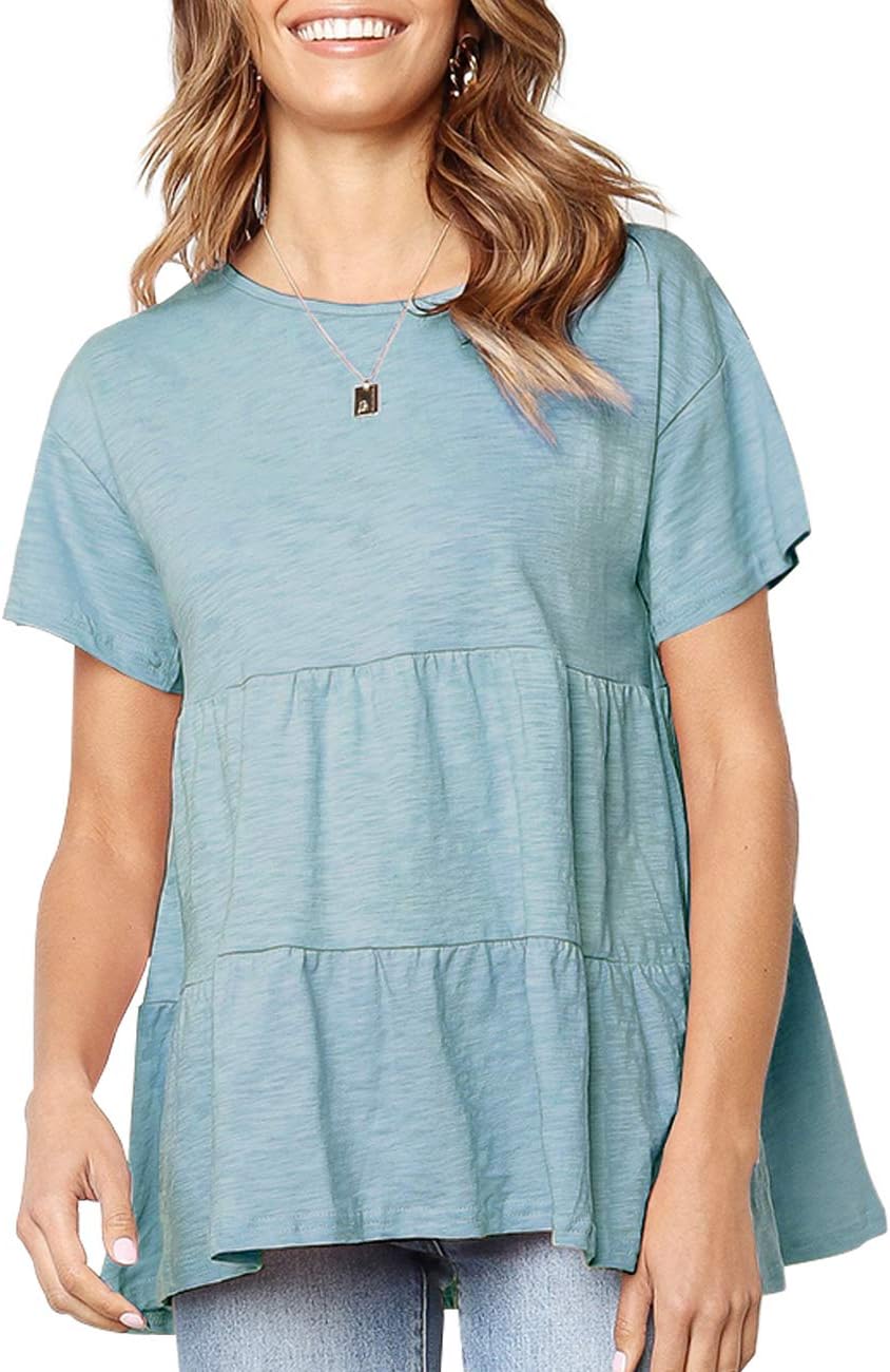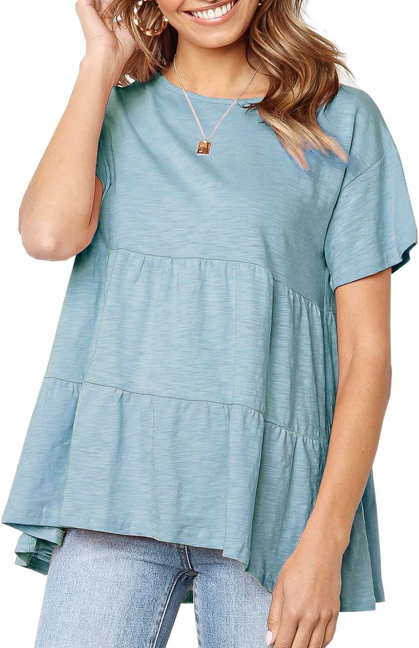Defal Women’s Summer Short Sleeve Loose T Shirt High Low Hem Babydoll Peplum Tops