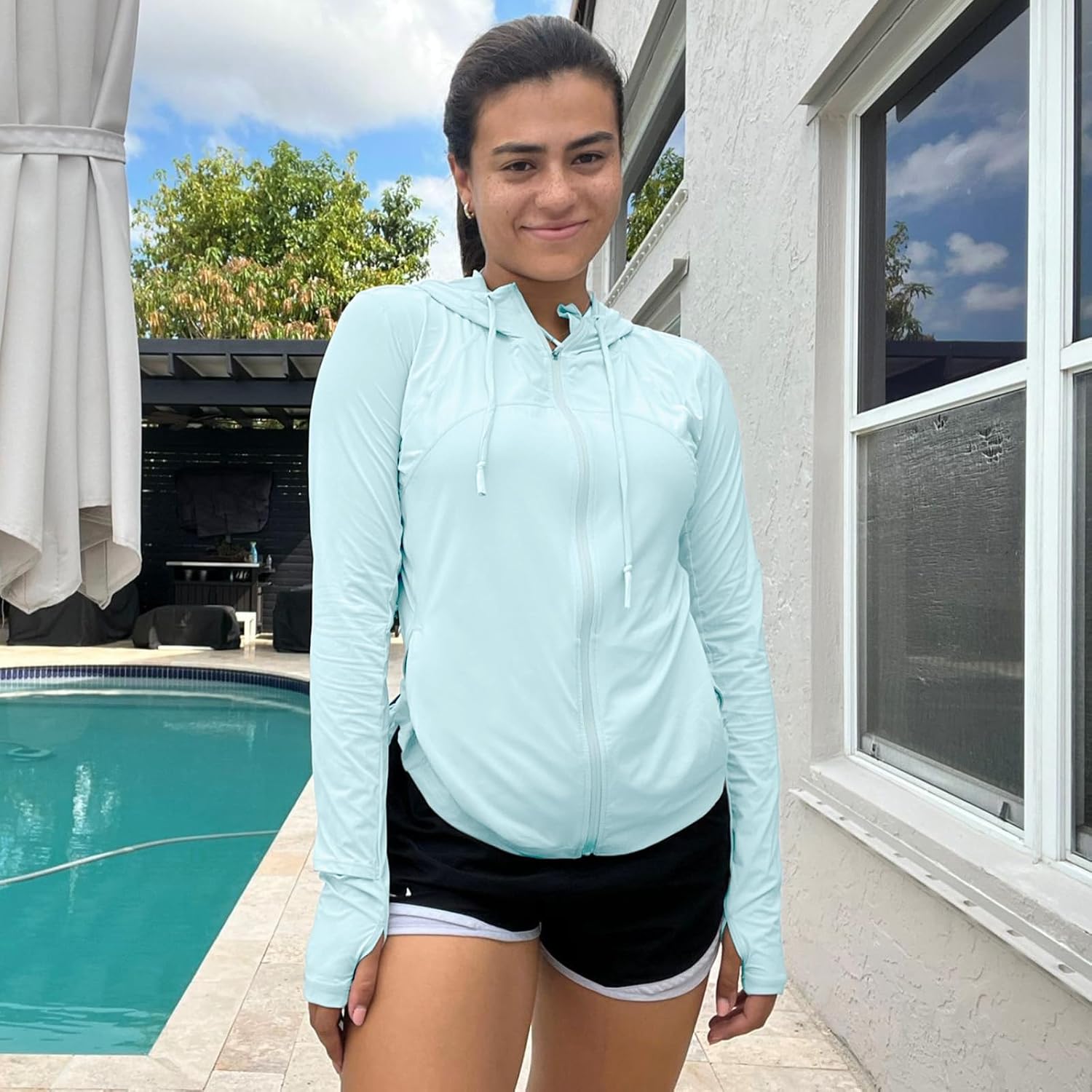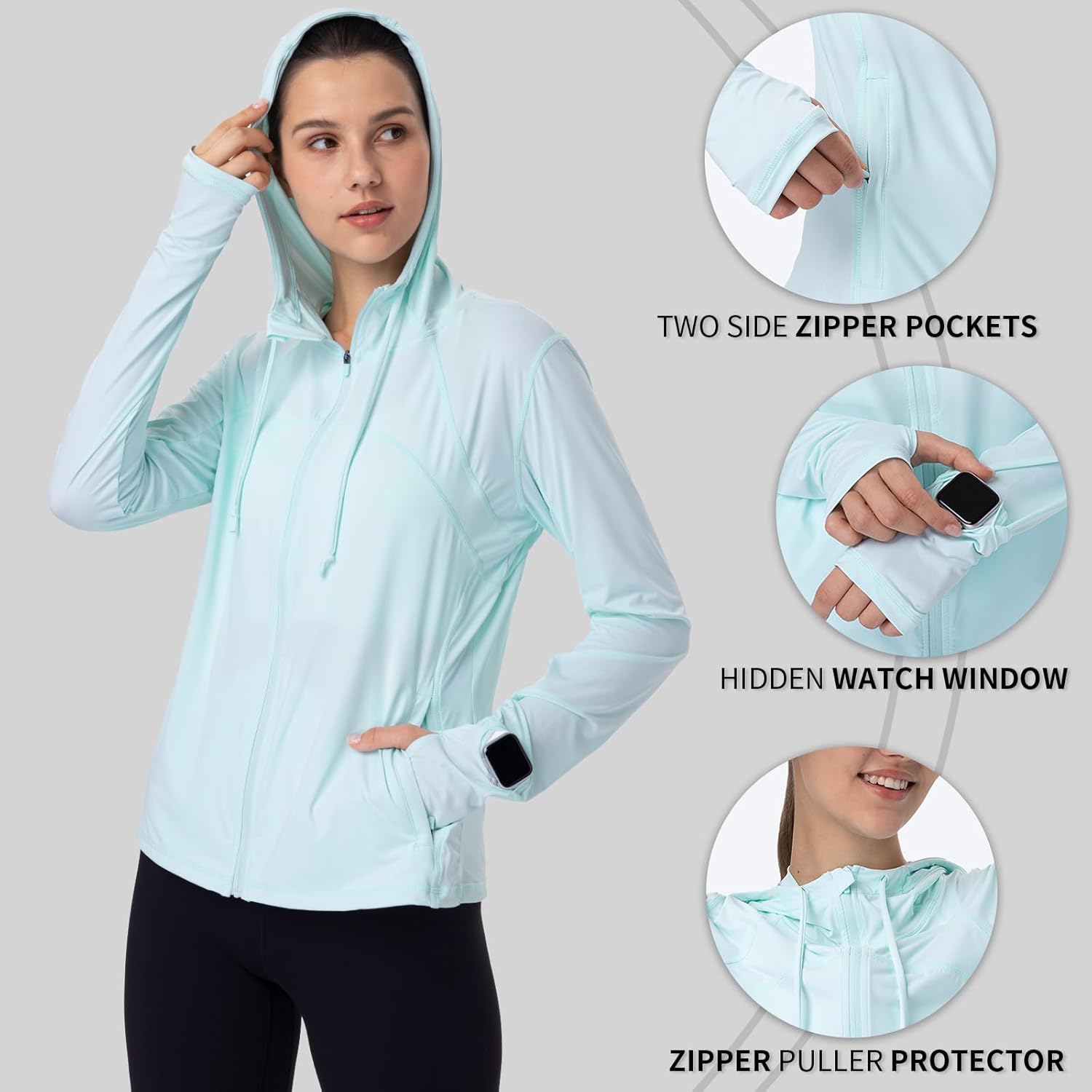 Womens Sun Protection Hoodie SPF Jacket Lightweight Full Zip Up Summer UV UPF 50+ with Pockets Thumb Hole