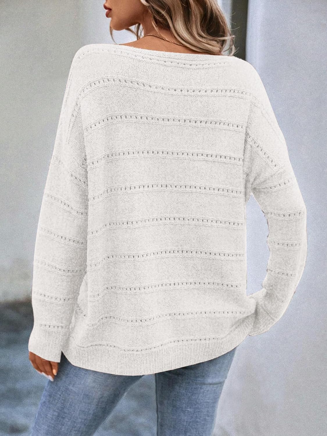 Exquisite hollow out, boat neck, drop shoulder long sleeve, create comfortable and cute outfit