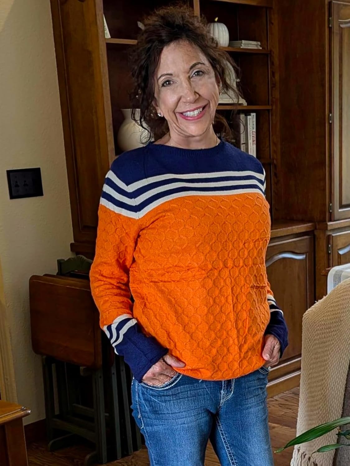 Be the first to review “Womens Sweaters Fall Colorblock Pullover Long Sleeve Round Neck Cute Fitted Striped Knitted Tops for Women Trendy”