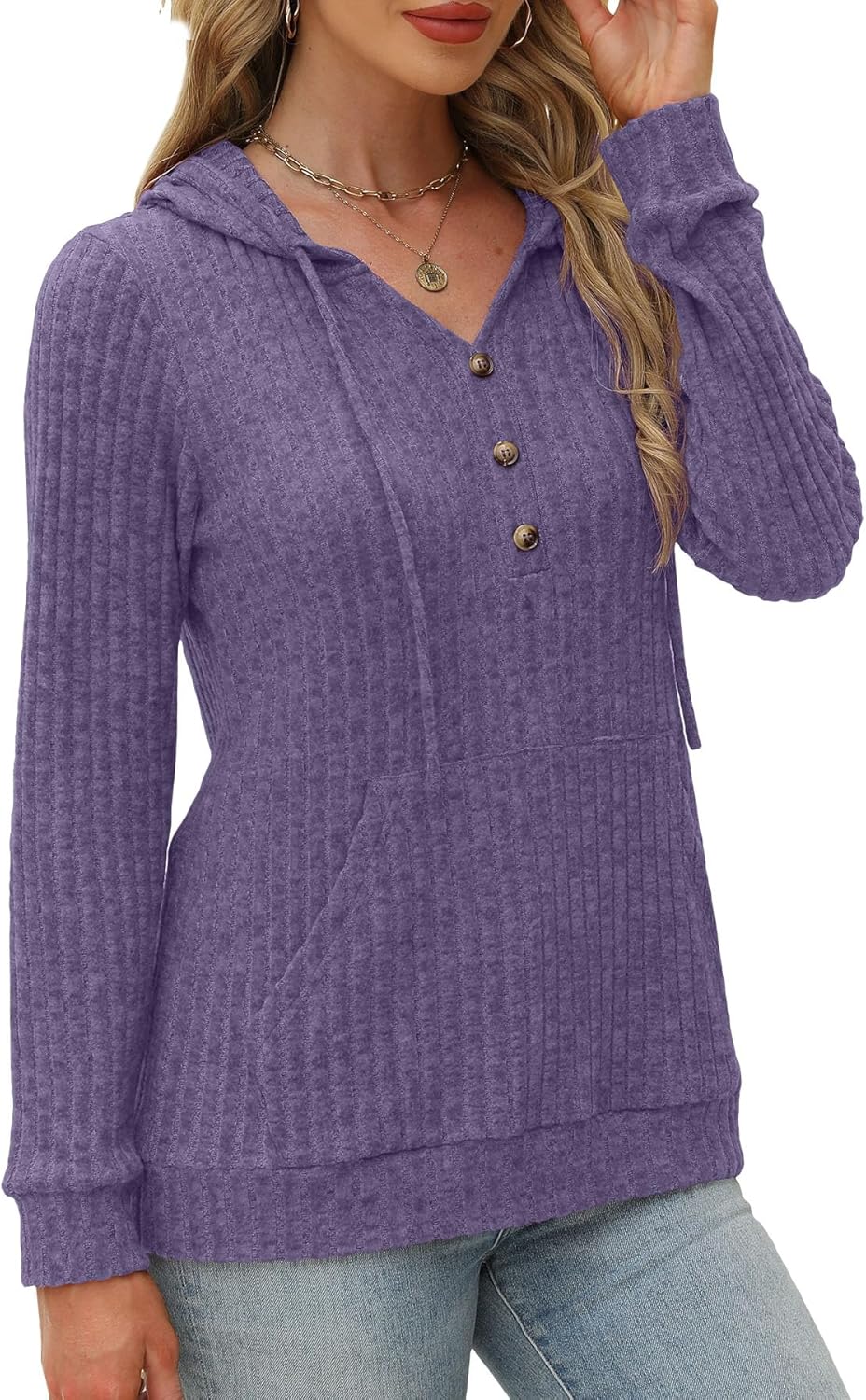 XMTOPYE Long Sleeve Shirts for Women V Neck Womens Hoodies with Button