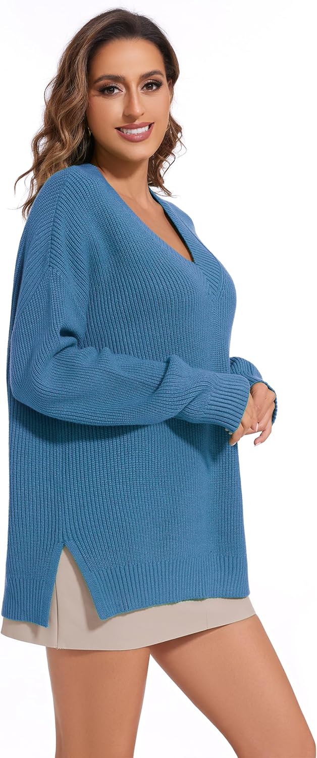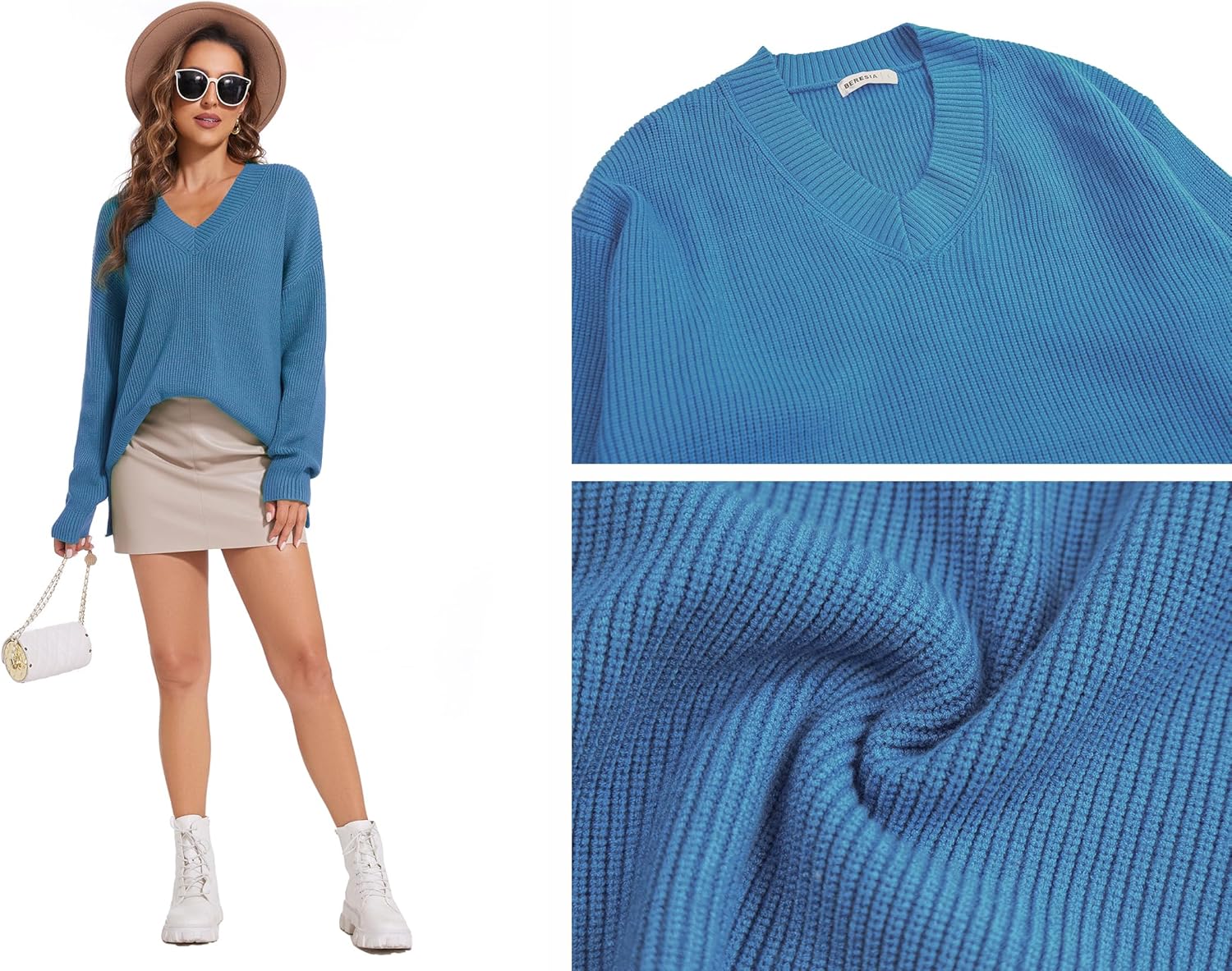 Women’s V Neck Oversized Sweaters for Women Off Shoulder Loose Knit Jumper Pullover Tops