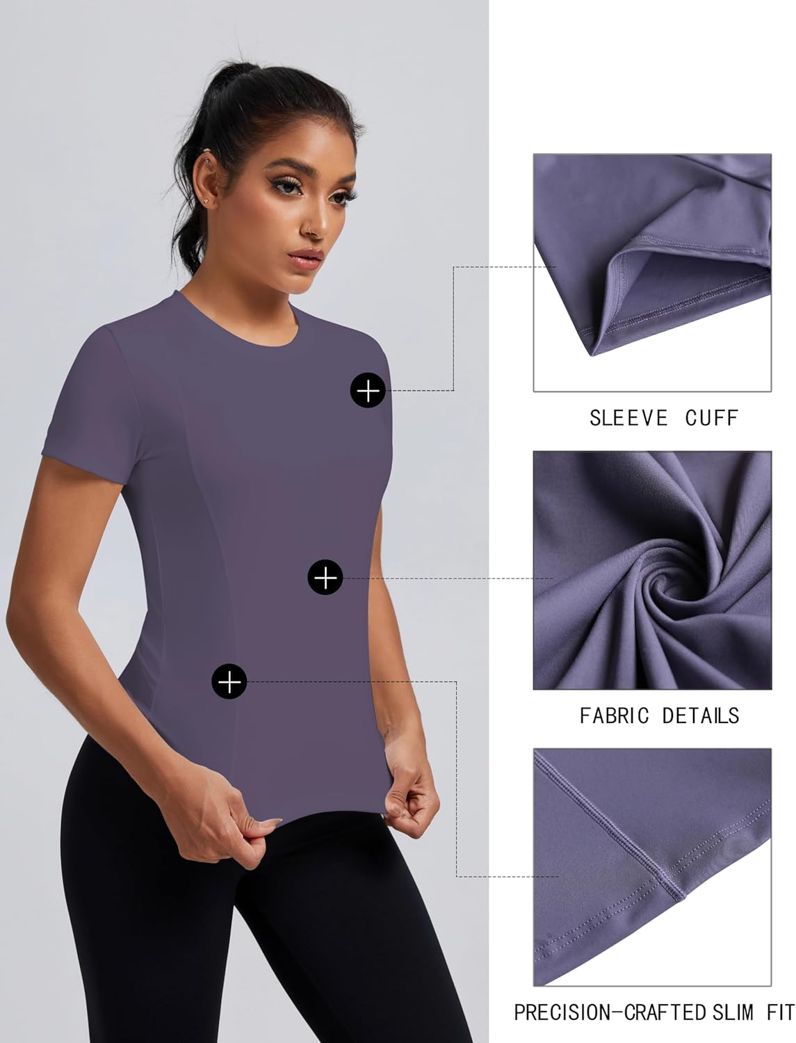 Womens Workout Compression Shirts,Athletic Dry Fit Yoga Gym Pilates Shapewear Tops,Cute Crop Y2K Short Sleeve Clothes