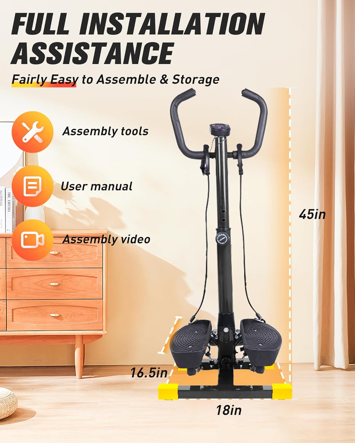 ✅ 【Total Body Workout & Space Saving】This stair stepper includes two high elastic resistance bands. Combining stepping and handrail exercises, you can do an upper body workout while stepping for full body fat burning and body shaping. This stair stepper for exercise at-home workouts has a compact design that fits in any corner of your home. You can easily fold the spinner and take up very little space, Simply place it in any favorite corner of your room.