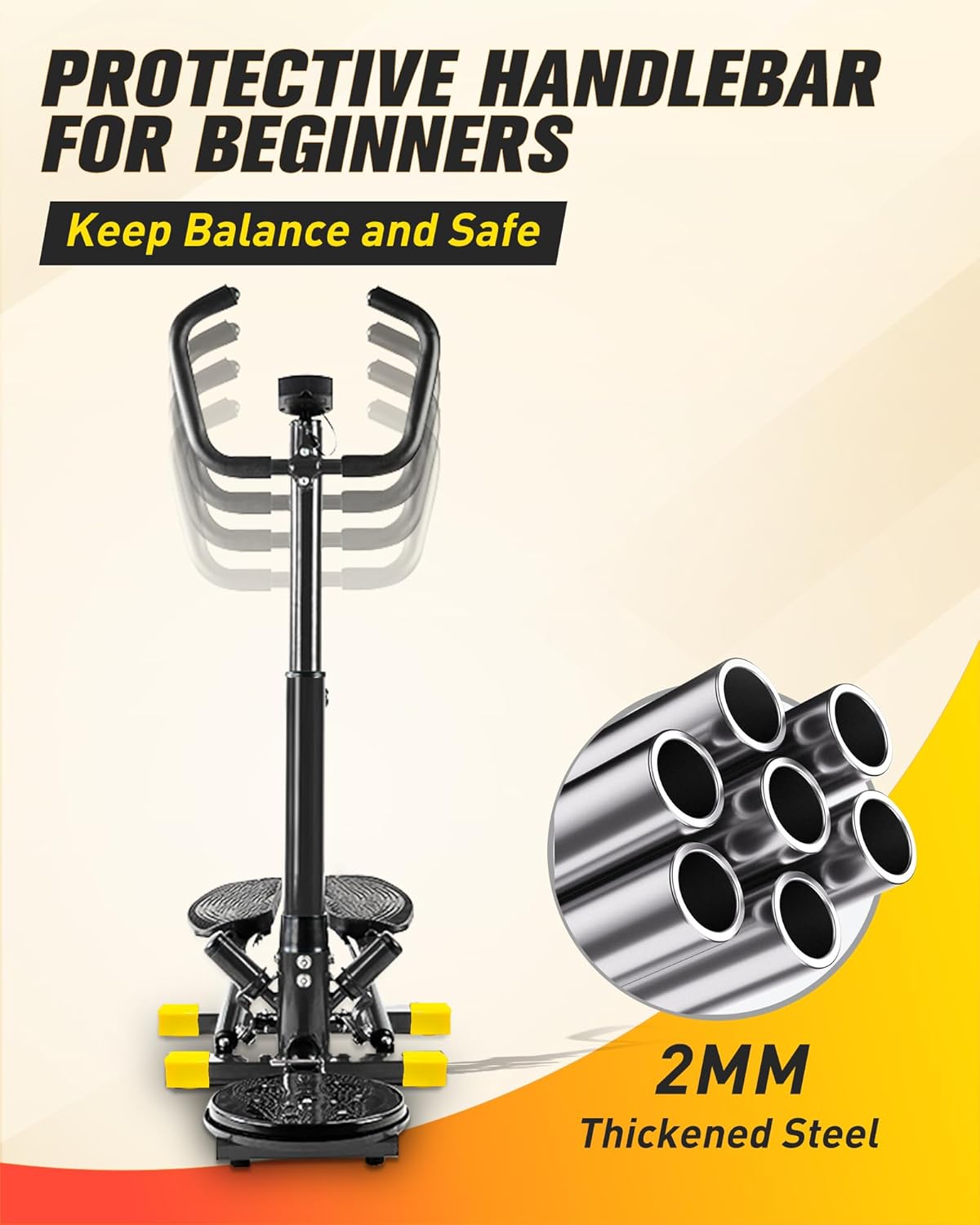 ✅【Absolute Stability and 300LBS Load Capacity】The load-bearing structure of the stair stepper with silicone anti-slip base unit is made of high-quality 2MM thick commercial steel, ensuring absolute stability and 300LBS load capacity. The V-twist stepper with handlebars allows you to achieve a full-body workout by training your core, arms, shoulders, biceps.
