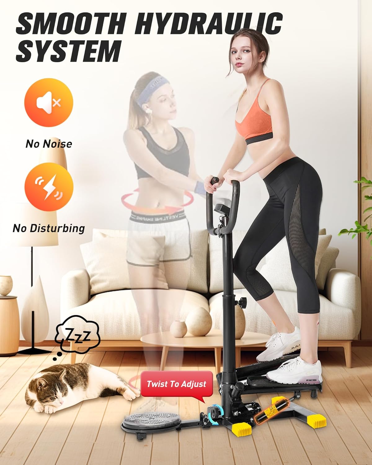 ✅ 【Silent Operation & 4-levels Adjustable Height】We use a hydraulic drive system that meets European standards as the resistance source. Therefore the hydraulic cylinders are designed to ensure stability while dramatically providing stable resistance and excellent shock absorption. Our stepper with handlebar features a flexible 4-level height adjustable system that allows you to adjust the height of the handles to different heights. Keep your workout at its best when using the stair stepper.
