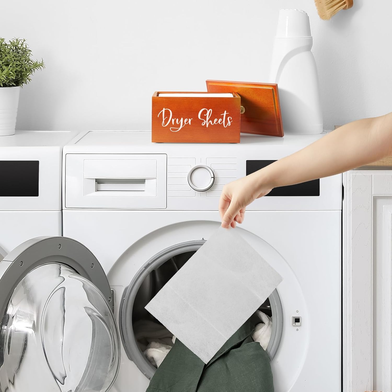 Laundry Room Organization and Storage: Keep your fabric softener sheets fresh, tidy, and within reach. This wooden dryer sheet holder streamlines daily chores by eliminating countertop clutter – say goodbye to scattered sheets and hello to a neat, functional space.