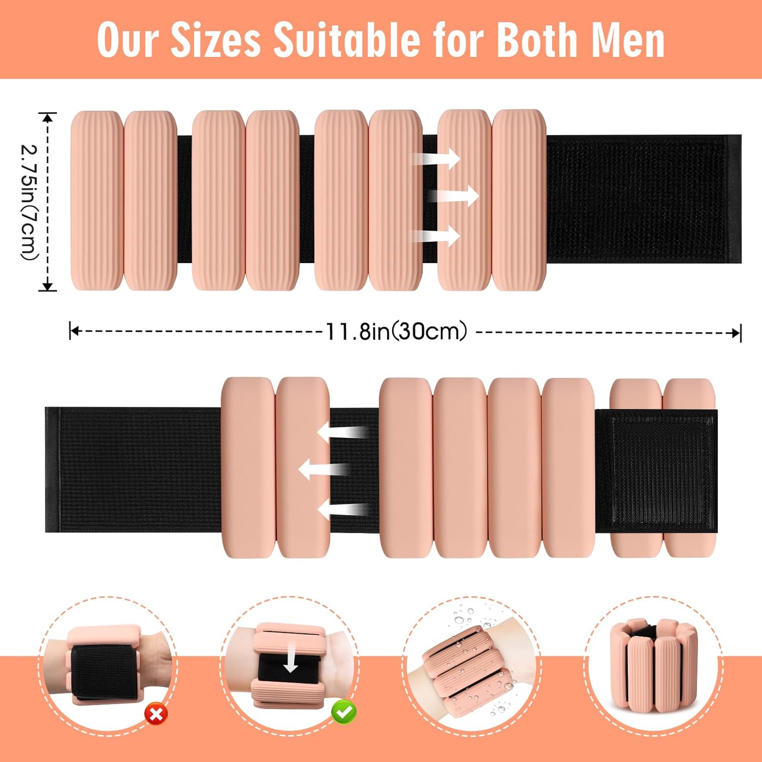 【WRIST WEIGHTS BRACELETS】: Elevate your fitness routine with our wrist and ankle weights set, featuring 2 adjustable silicone bracelets. Each bracelet weighs 1lb, providing a total of 2lbs for a balanced workout. The bracelets are designed to fit wrist/ankle circumferences from 7.8IN to 11IN, catering to users of all sizes. Experience a new level of comfort and performance during your exercises.