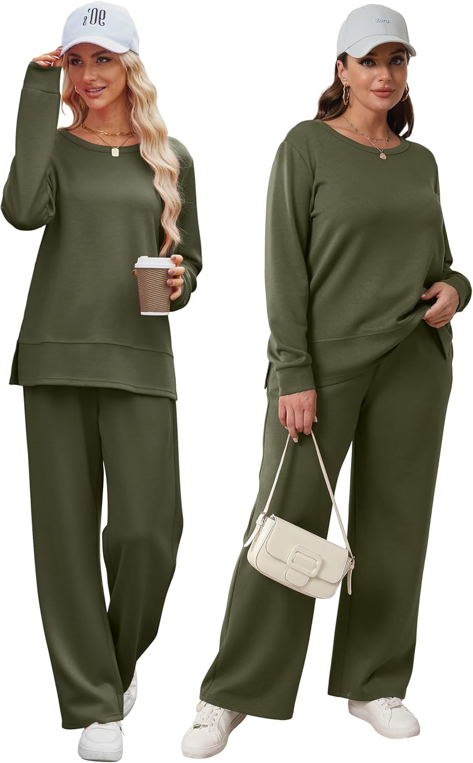 XIEERDUO 2 Piece Lounge Sets for Women Side Slit Tops & Wide Leg Long Pants