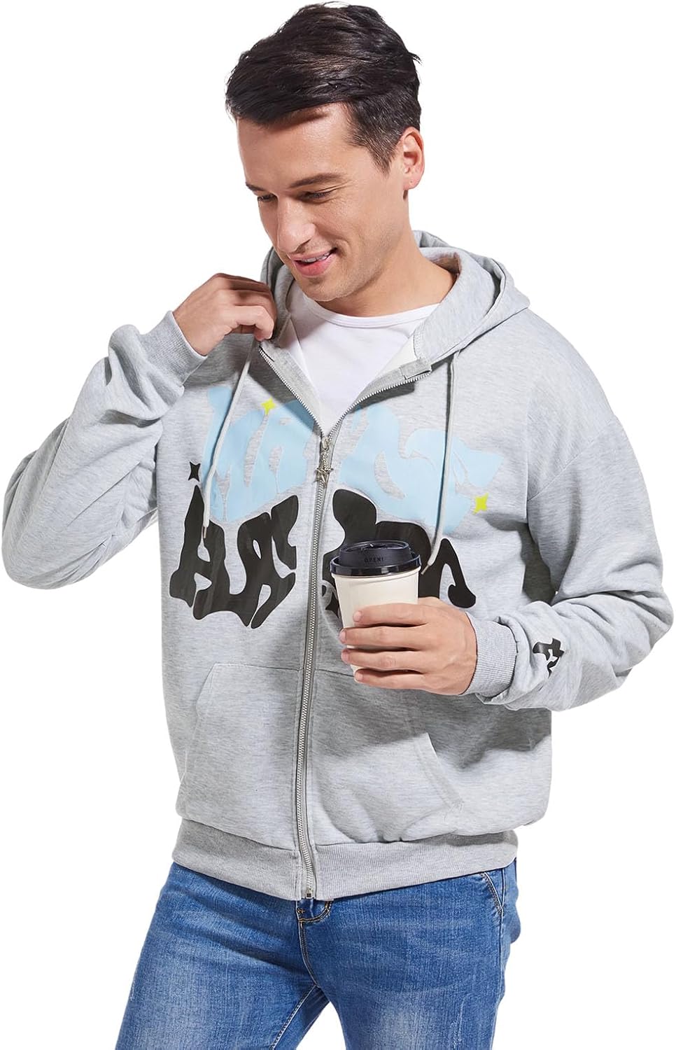 Cute Graphic Hoodies for Women Men Long Sleeve Zip Up Oversize Streetwear Jackets