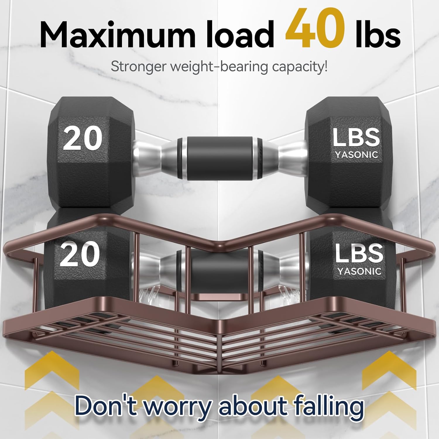 SPACE-SAVING CORNER DESIGN:Engineered with L-shaped shower shelves that perfectly hug 90° wall corners. Our corner shower shelf provides 30% more capacity than standard models to store 19+ full-size shampoo bottles