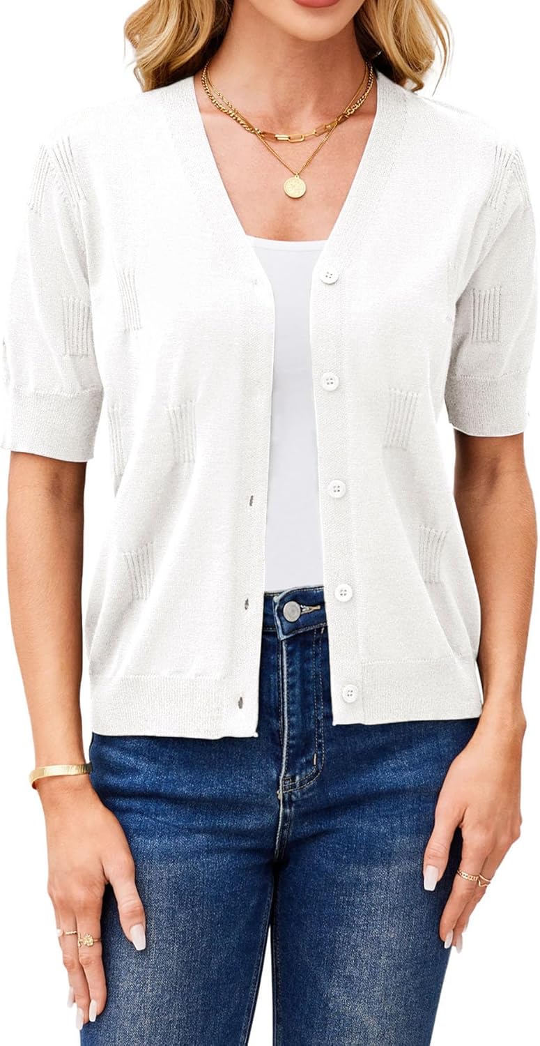 Womens Lightweight Casual Work V Neck Short Sleeve Button Up Summer Cardigan for Dess