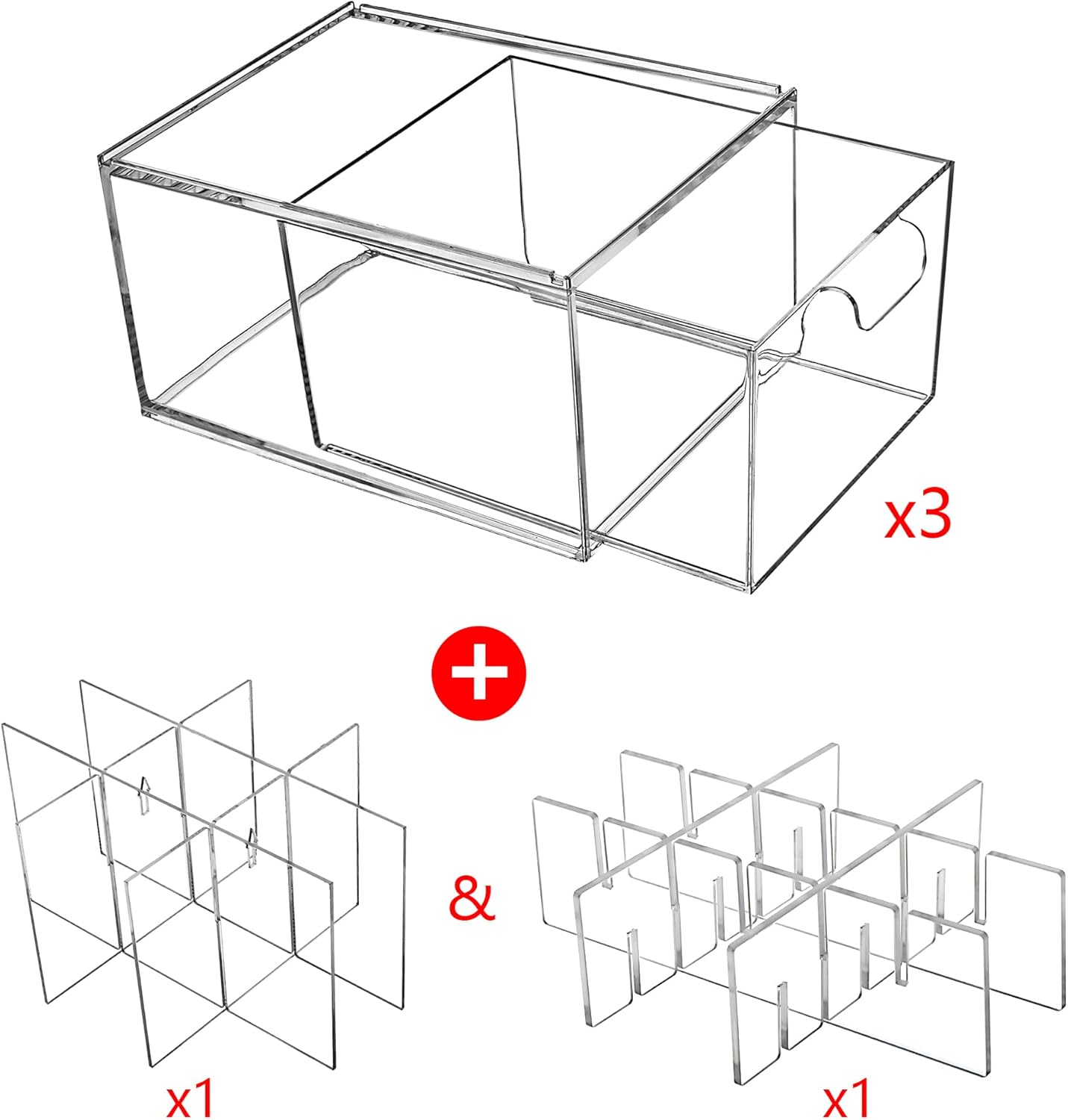 The stackable design of this bathroom organizers and storage set allows you to customize your vanity organizer to your exact needs. It is available in a variety of quantities, including drawers and remoable dividers, providing versatile storage for different cosmetics such as makeup, skin care products, brushes, and more.