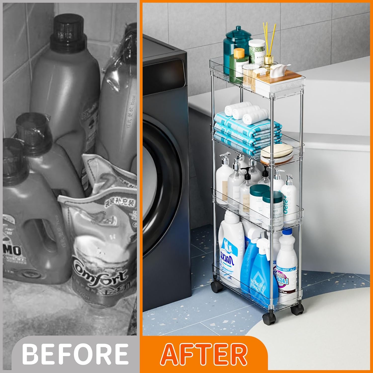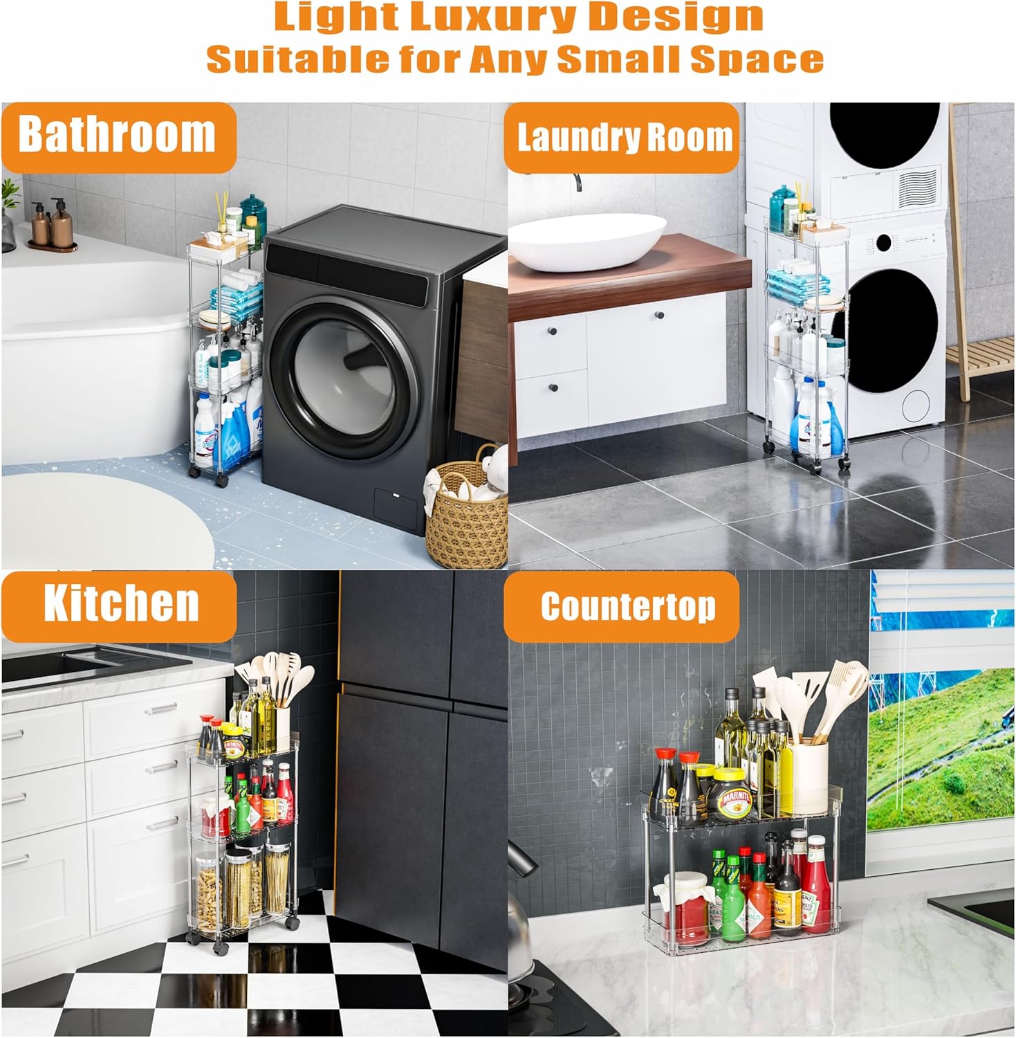 Bathroom Rolling utility vehicle can be used in any corner of the house, especially suitable for narrow places, equipped with 360° rotating wheels, flexible use, suitable for office, bathroom, laundry, kitchen, and other small places to use